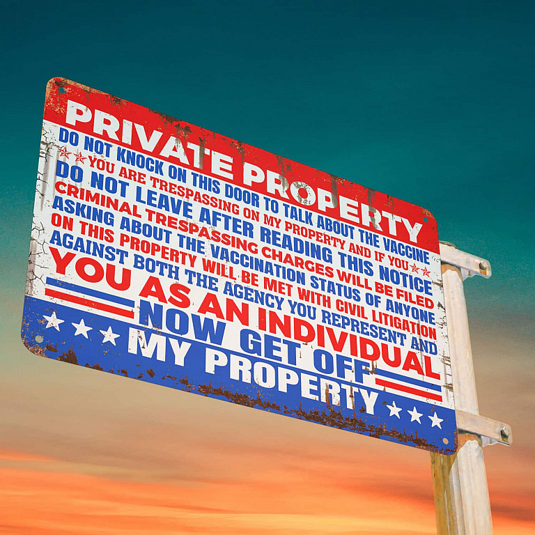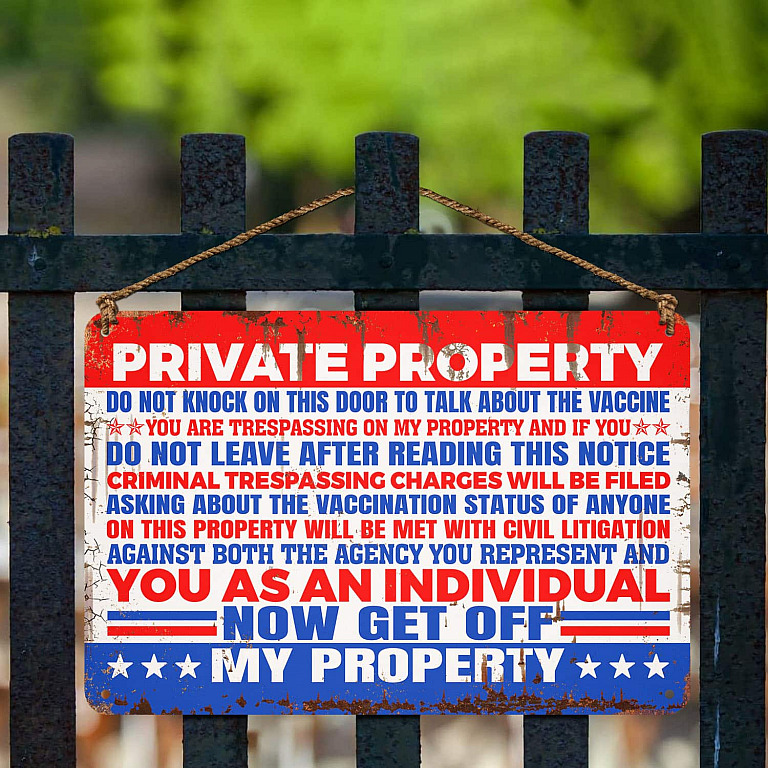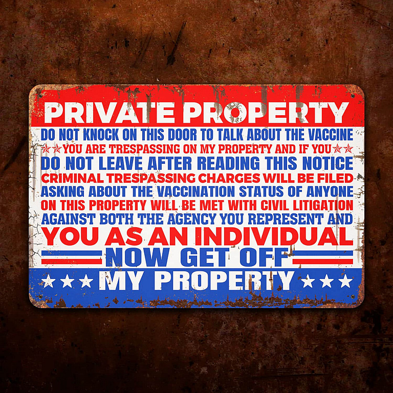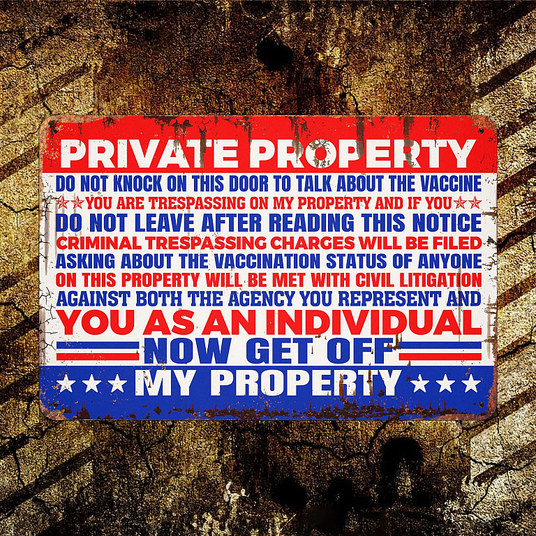 Let’s Shop Private Property Do Not Knock On This Door To Talk About The Vaccine Metal Sign – Anti Vaccine Outdoor Decor!