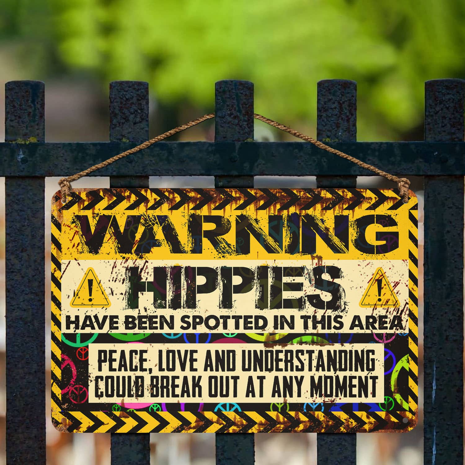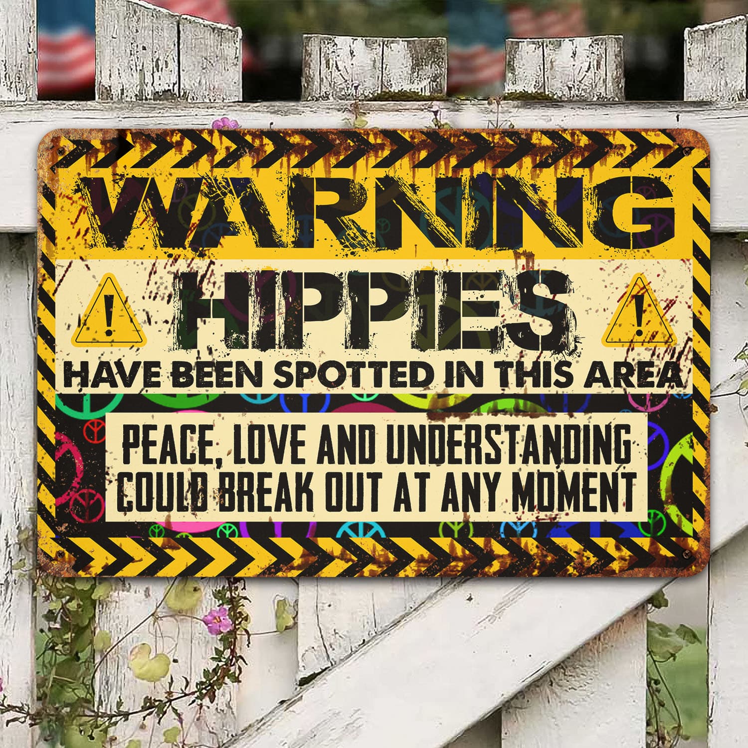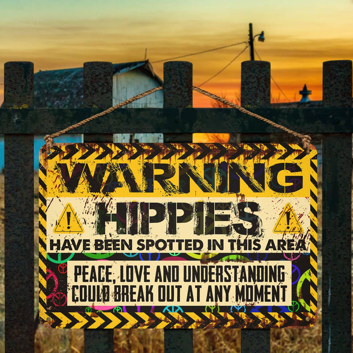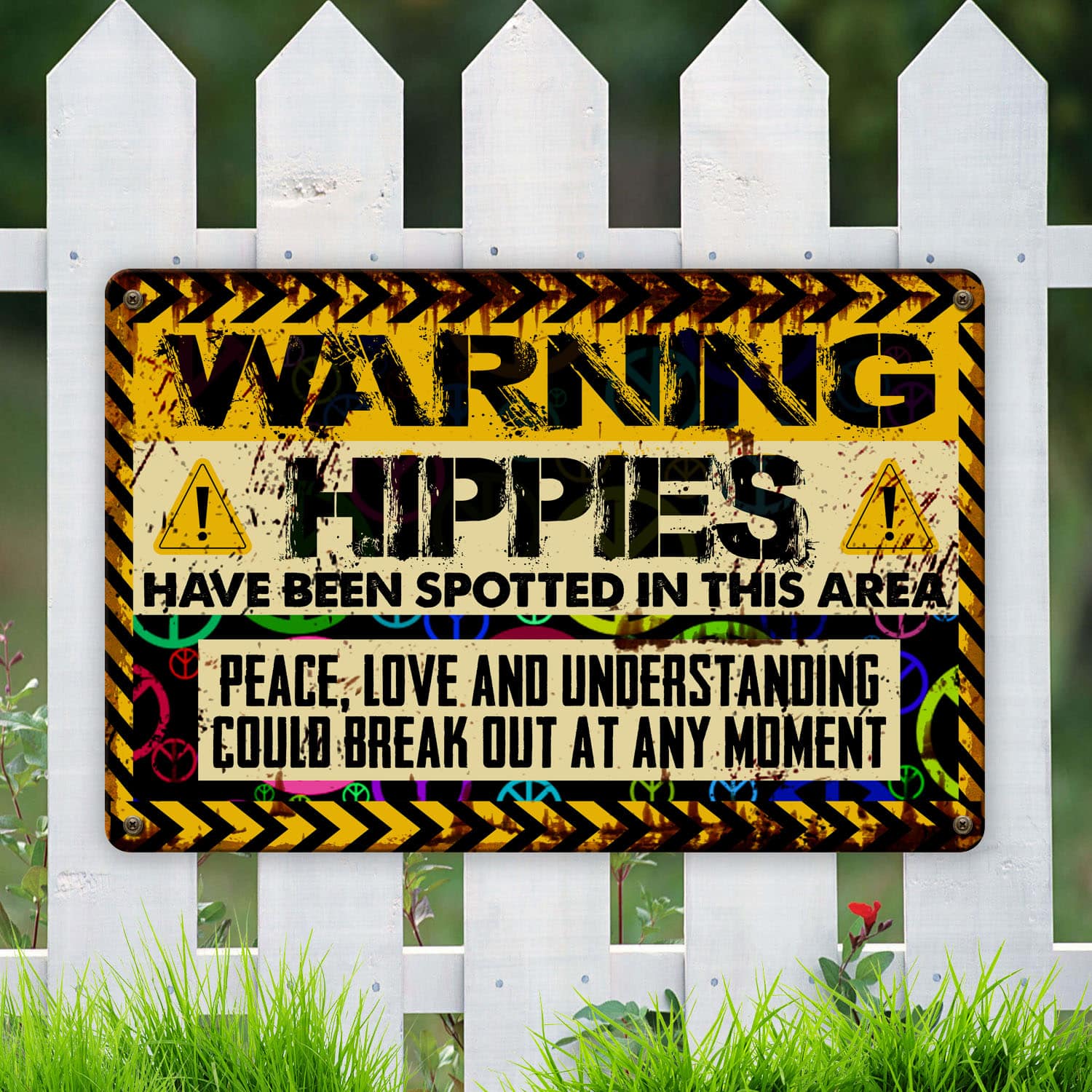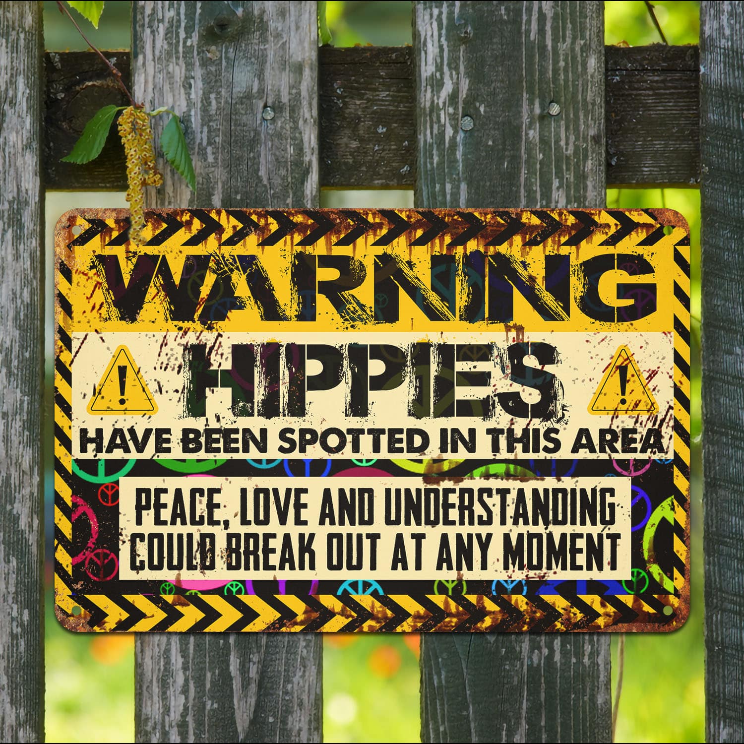 Let’s Shop Warning Hippies Have Been Spotted In This Area Peace Love And Understanding Could Break Out Any Moment Decorative Metal Sign!