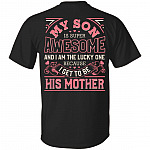 My Son Is Super Awesome And I Am The Lucky One Because I Get To Be His Mother Print On Back Only T-Shirt