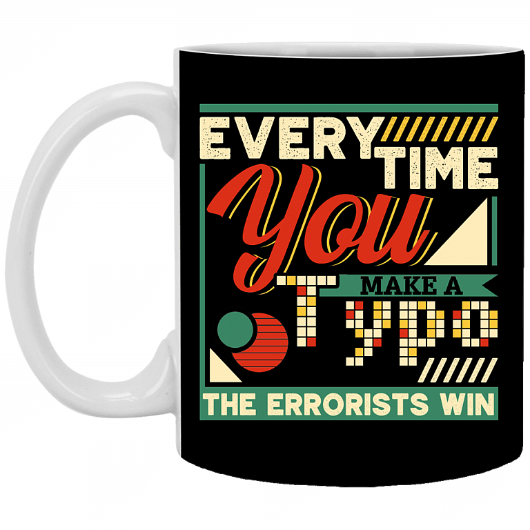 Every Time You Make A Typo The Errorists Win Funny Ceramic Coffee Mug – Beer Stein – Water Bottle
