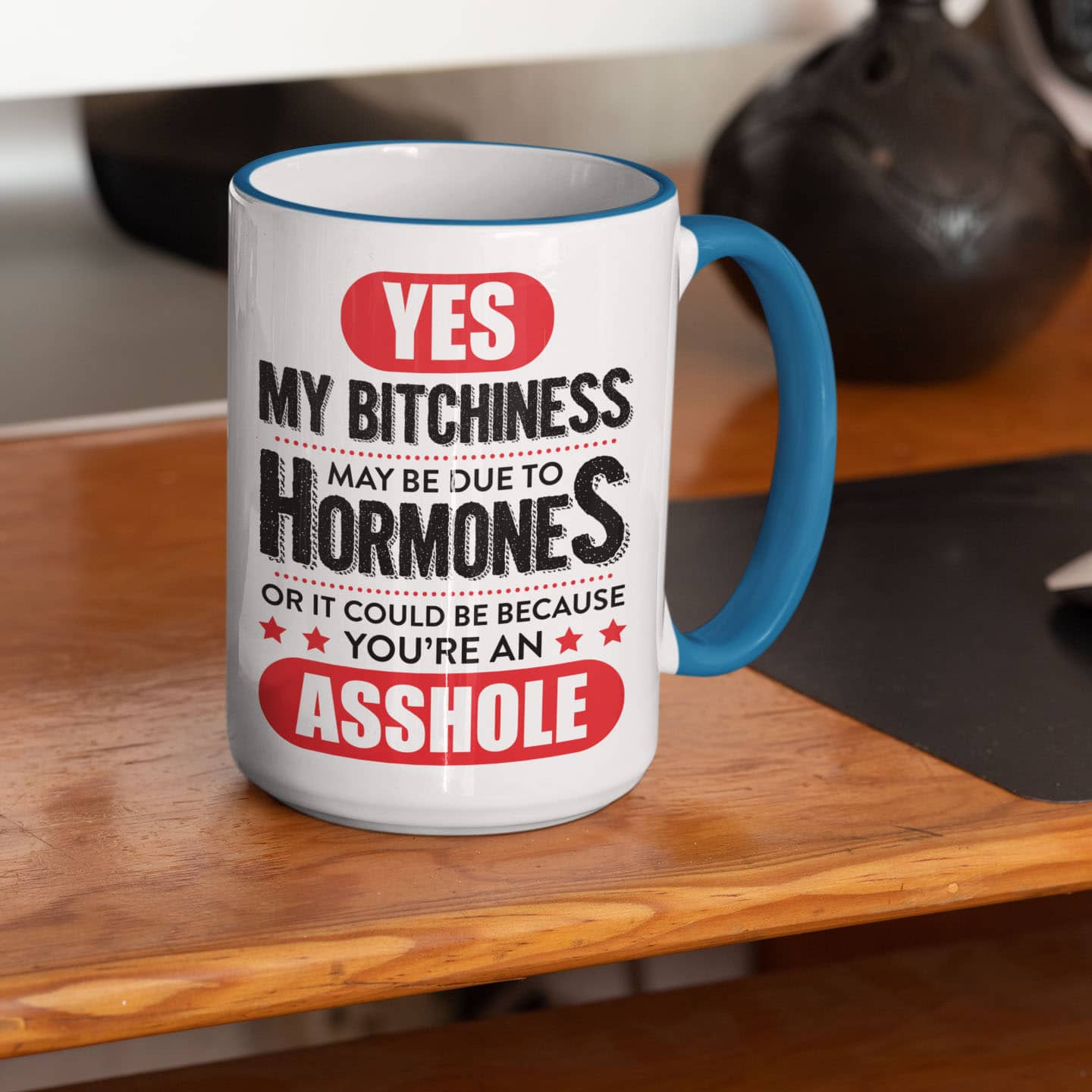 Let’s Shop Yes My Bitchiness May Be Due To Hormones Or It Could Be Because You’re An Asshole Funny Coffee Mug!