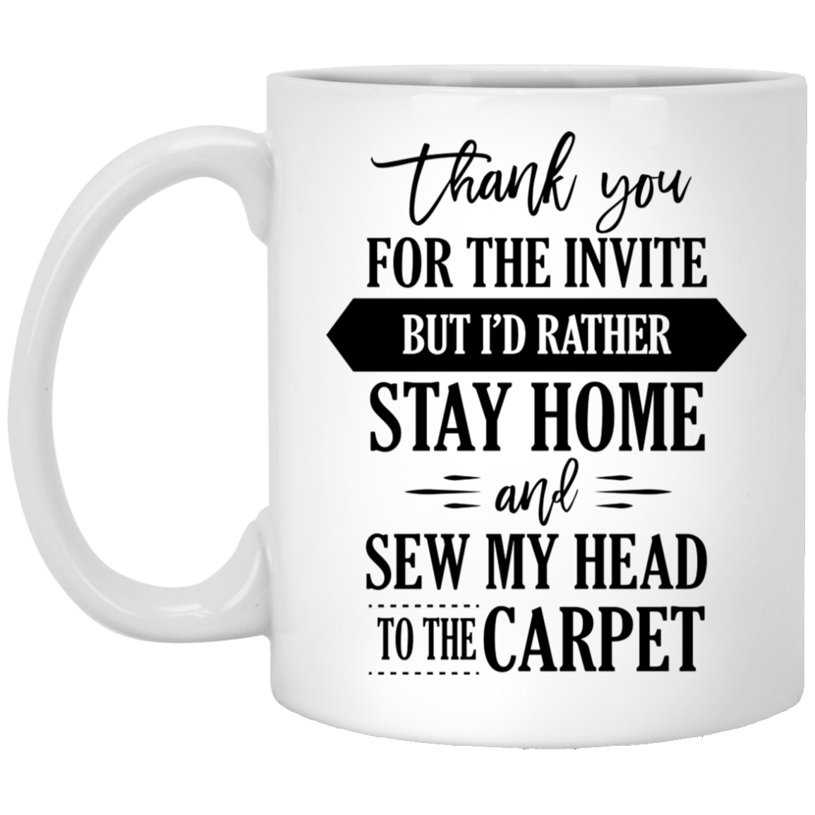 Shop Thank You for the Invite but I’d Rather Stay Home Ceramic Coffee Mug – Beer Stein – Water Bottle.