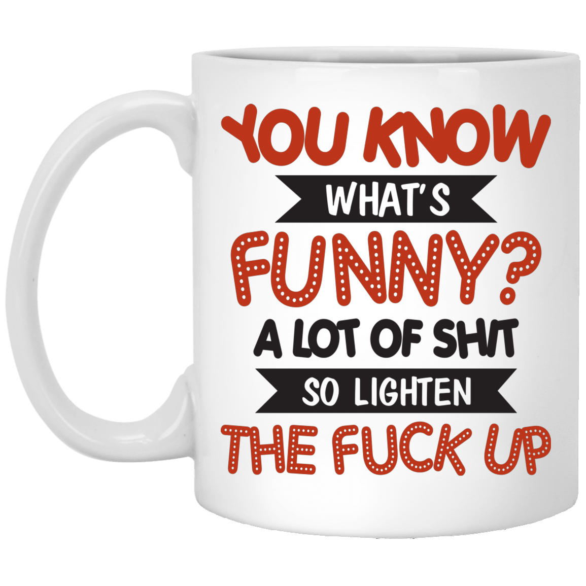 Shop You Know What’s Funny A Lot Of Shit So Lighten The Fuck Up Ceramic Coffee Mug – Beer Stein – Water Bottle.