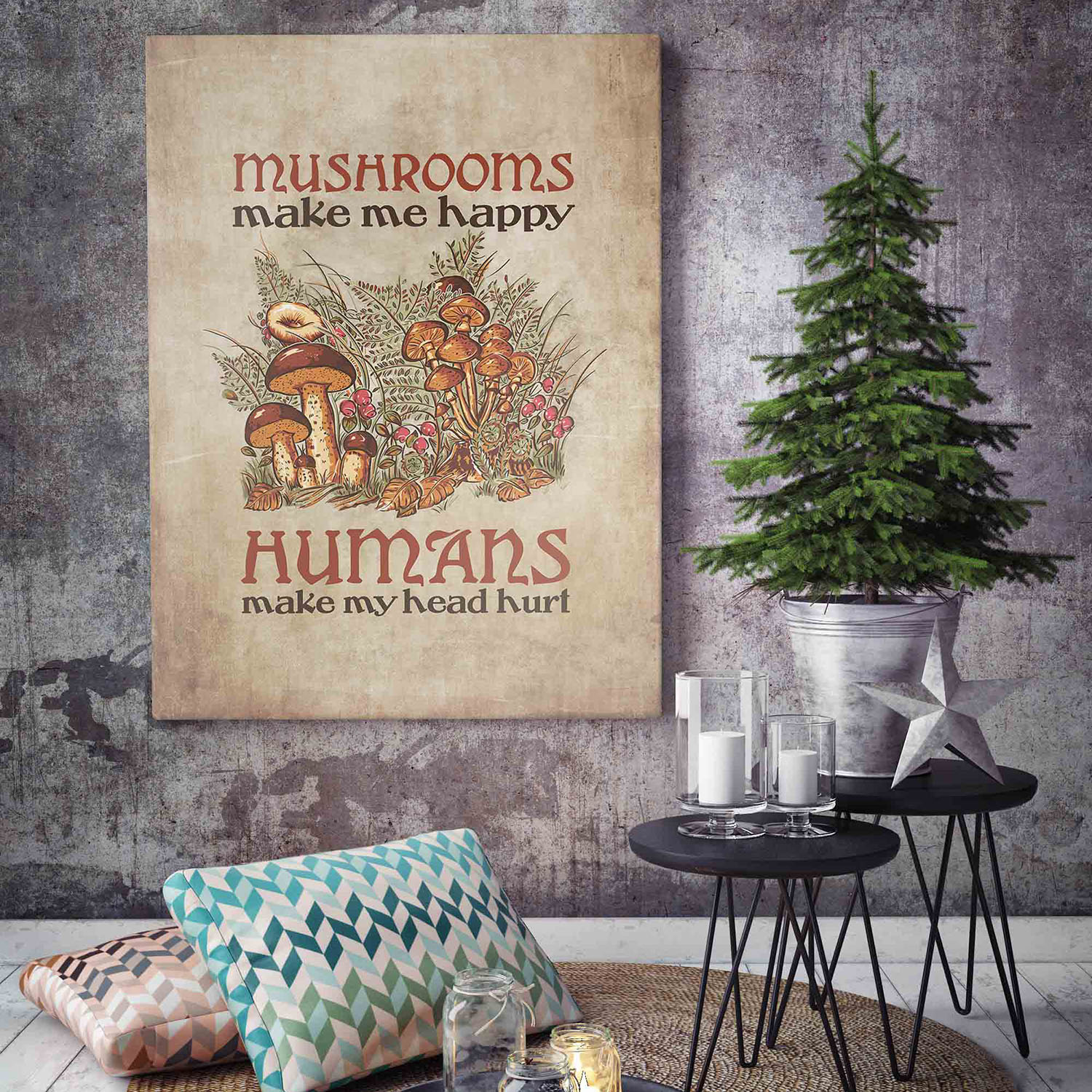 Let’s Shop Mushrooms Make Me Happy Meme Quote Framed Canvas Unframed Poster – Funny Human Mushroom Saying Decor Wall Art!