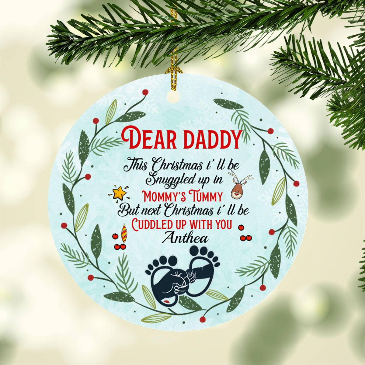 Let’s Shop Personalized Dear Daddy This Christmas I’ll Be Snuggled Up In Mommy’s Tummy Christmas Ornament New Dad To Be!