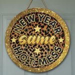 Let’s Shop New Year Same Hot Mess Funny Decorative Circle Wooden Door Sign – Front Porch Sign Decor!
