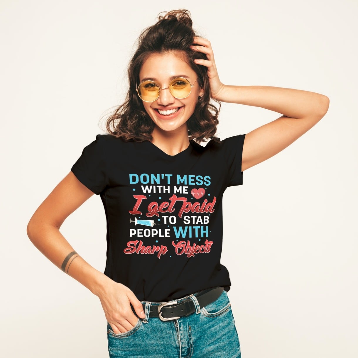 Don’t Mess with Me I Get Paid to Stab People with Sharp Objects Dark T-Shirt – V-Neck Tee – Youth Tee