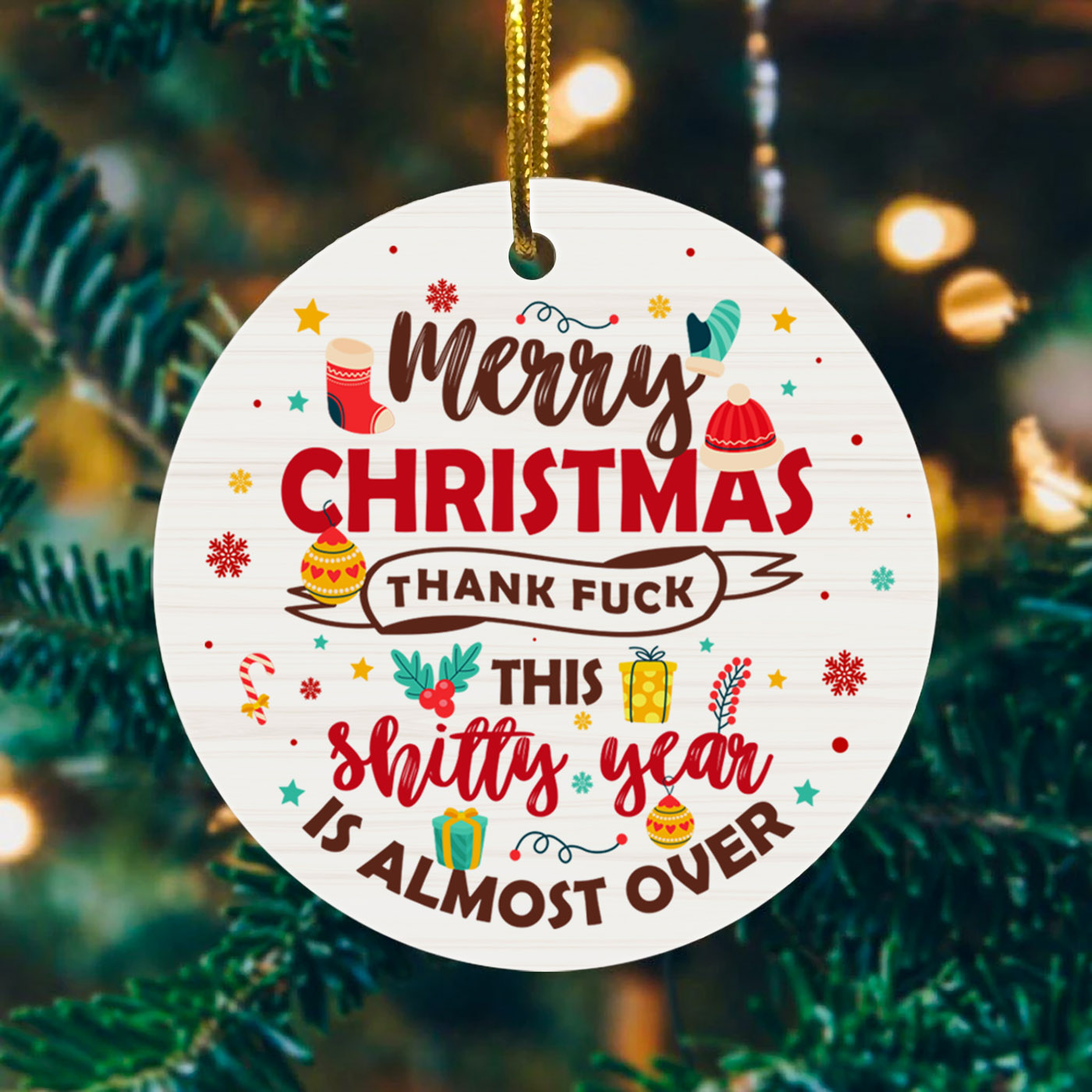 Let’s Shop Merry Christmas Thank Fuck This Shitty Year Is Almost Over Circle Ornament – Funny Pandemic Christmas Ornament!