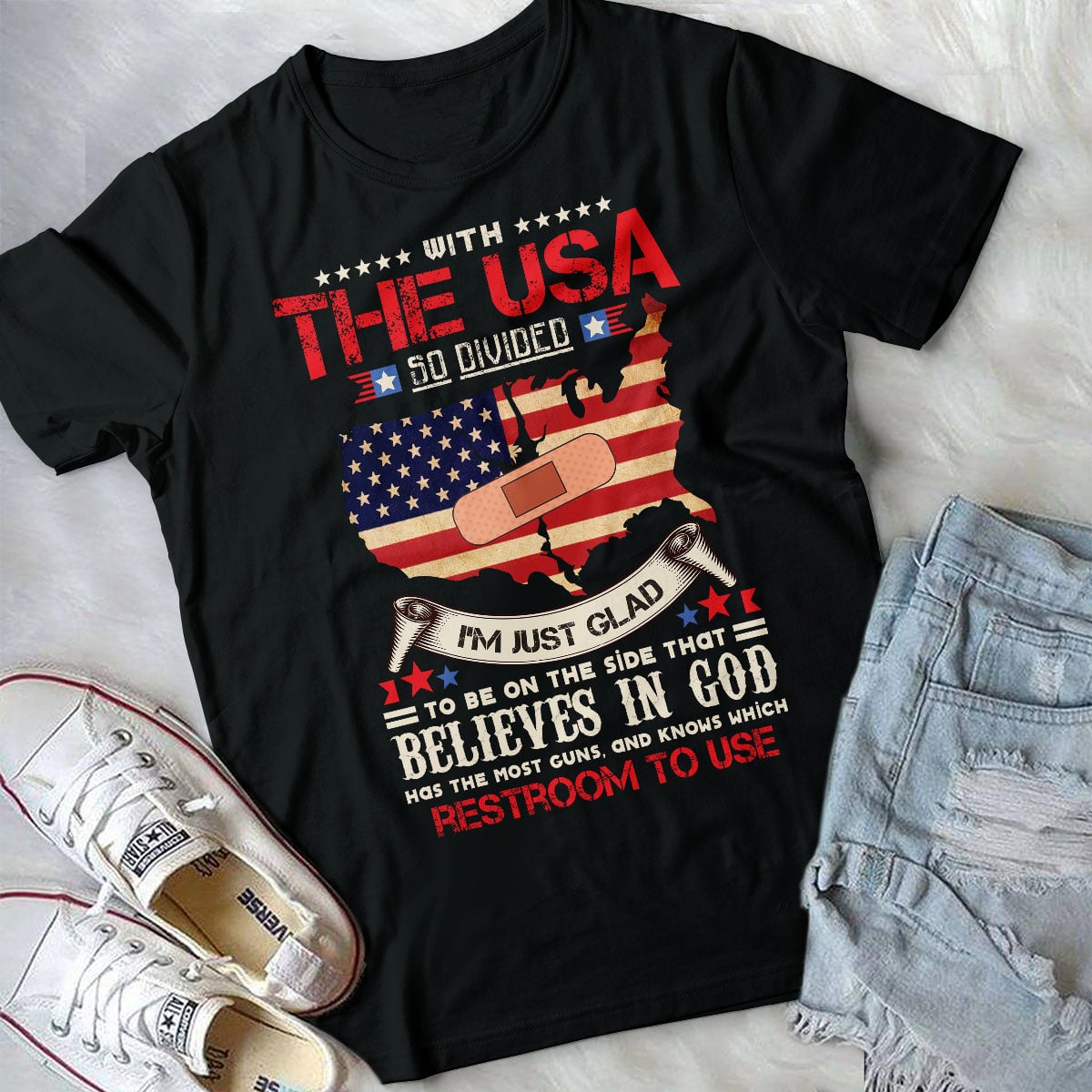 With The USA So Divided I’m Just Glad To Be On The Side That Believes In God American Patriotic T-Shirt