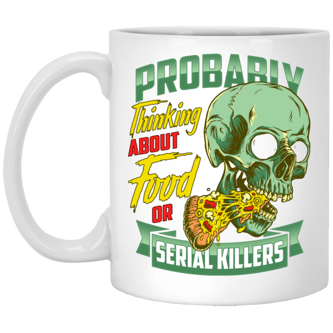 Shop Probably Thinking About Food Or Serial Killers Pizza Coffee Mug – Beer Stein – Water Bottle.