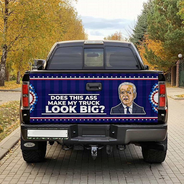 Let’s Shop Does This Ass Make My Truck Look Big Truck Funny Biden Tailgate Decal Sticker Wrap – Vinyl Graphic Decal!
