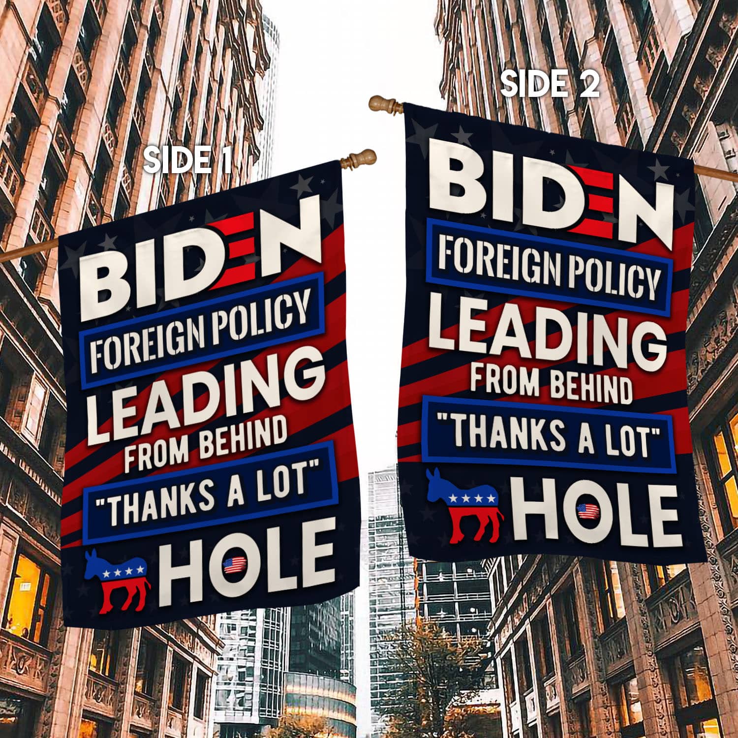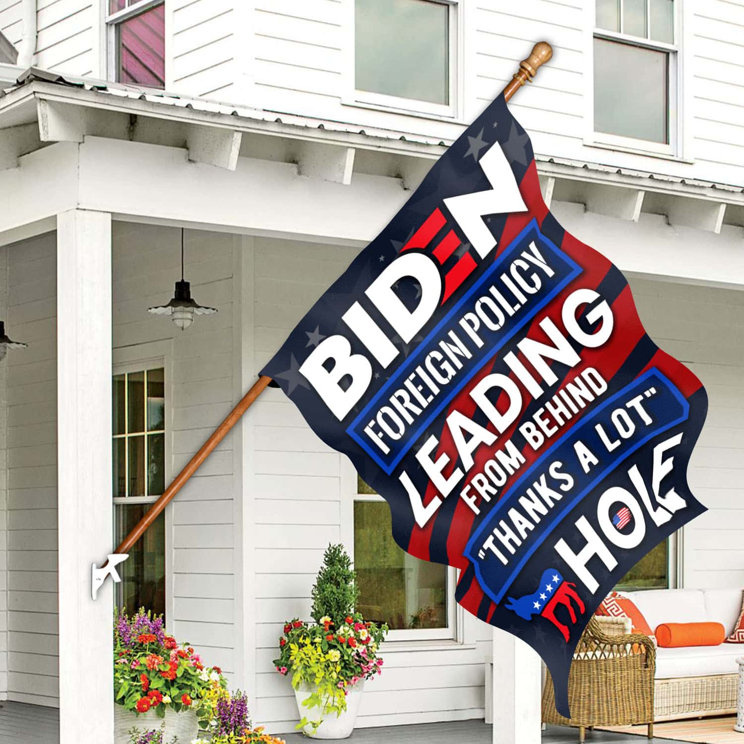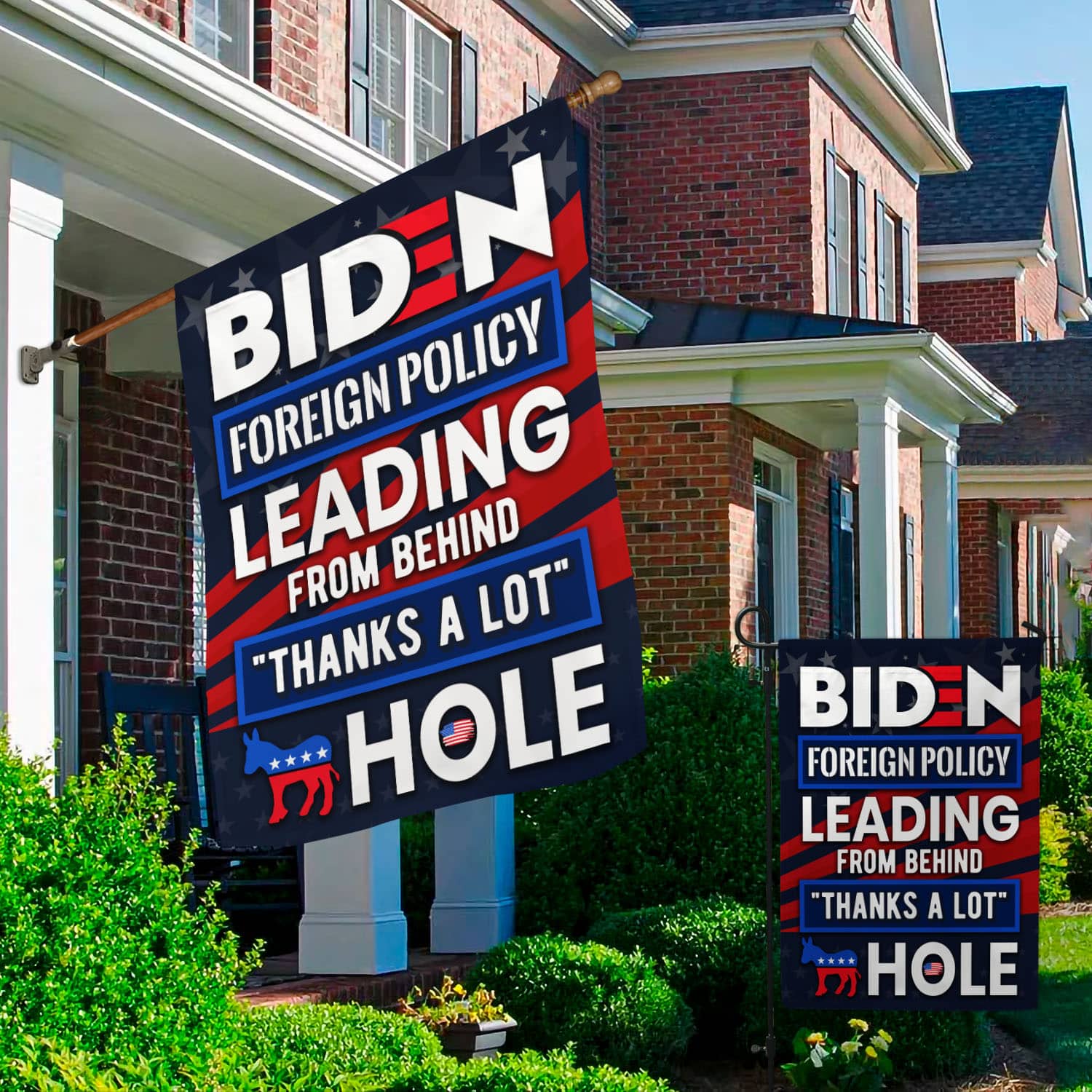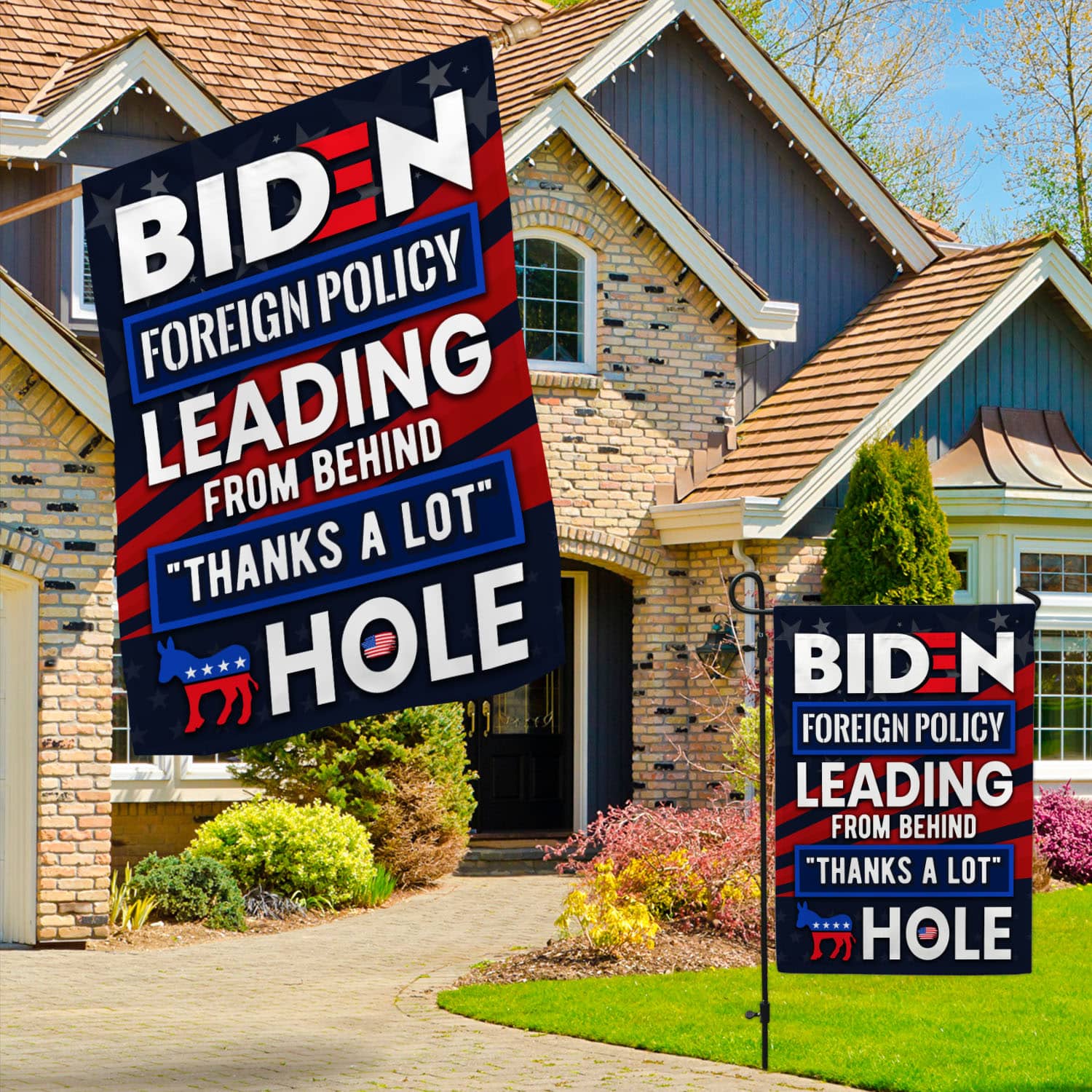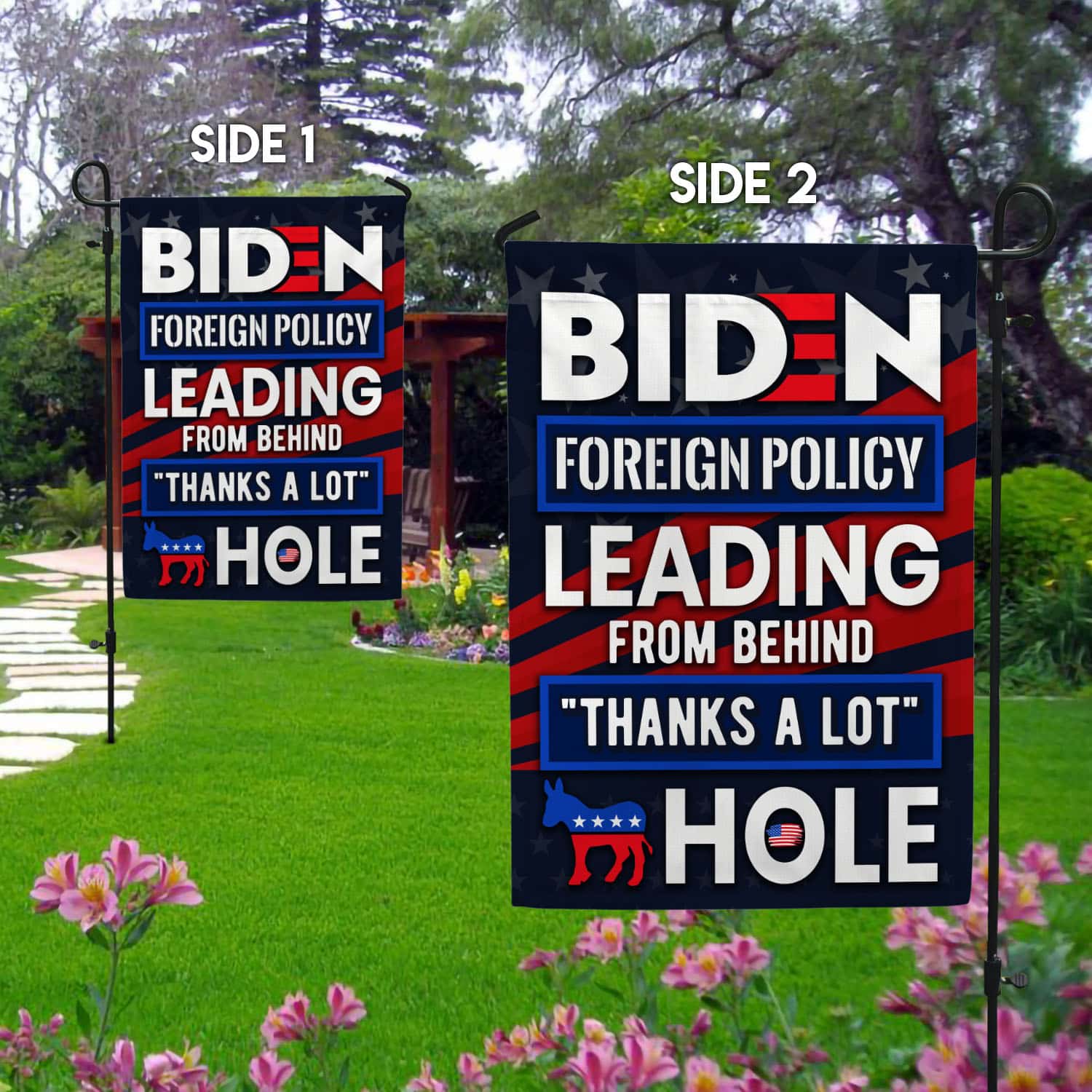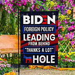 Let’s Shop Biden Foreign Policy Leading From Behind Thanks A Lot Hole Outdoor Garden Flag – House Flag – Wall Flag!