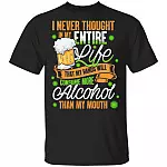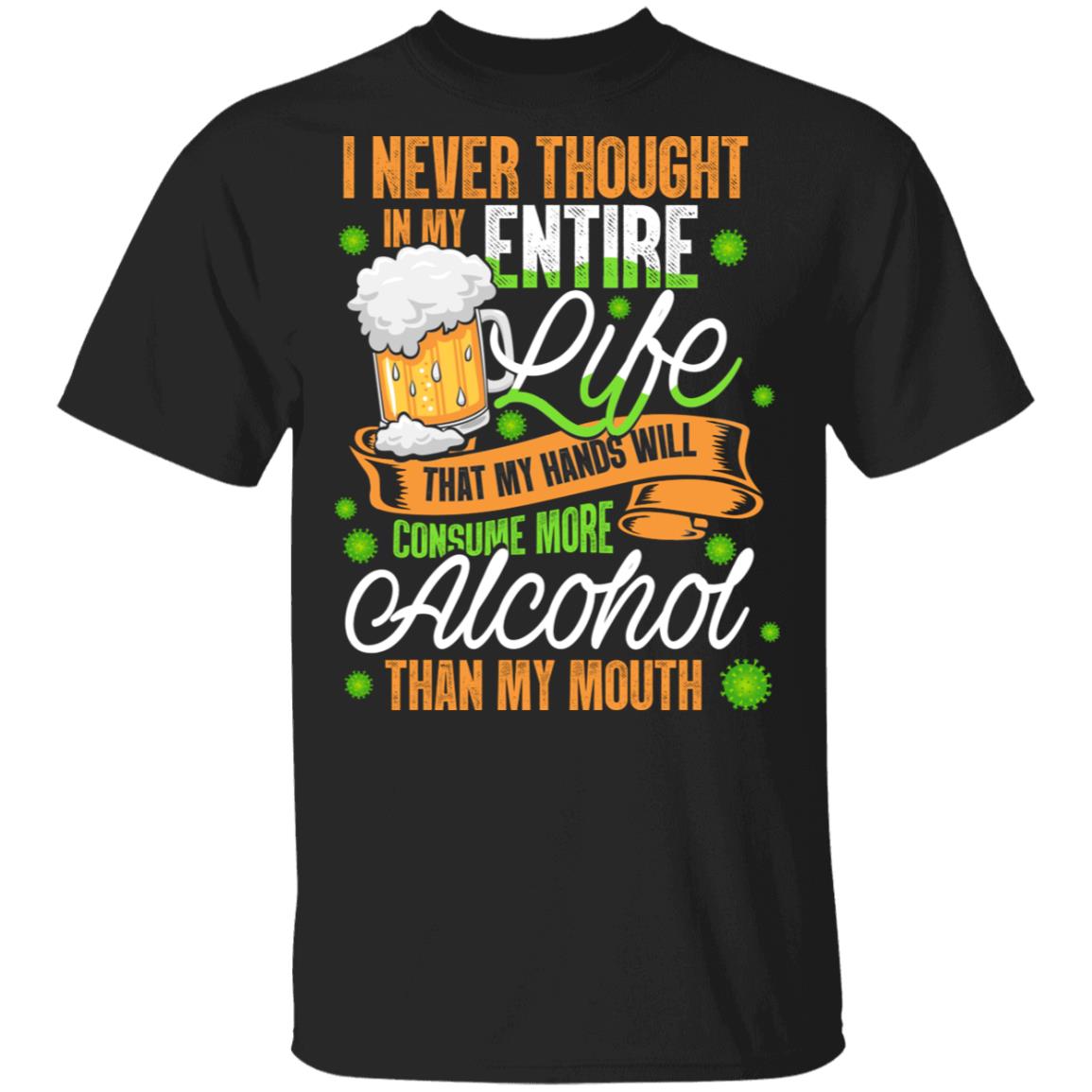 I Never Thought In My Entire Life That My Hands Will Consume More Alcohol Than My Mouth T-Shirt – Funny Quarantined Shirt