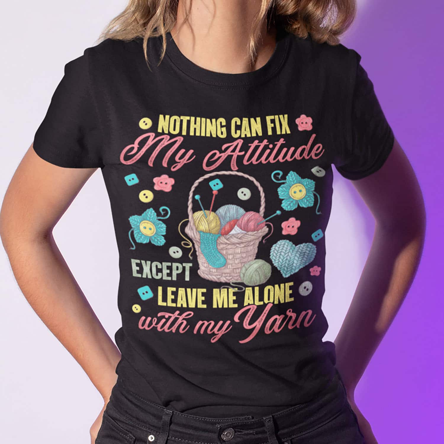 Nothing Can Fix My Attitude Except Leave Me Alone With My Yarn T-Shirt – Yarn Lover V-Neck – Funny Quilter Gifts