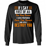 Are you spending too much time to find creative merchandise for you or suitable gifts for your friends, your mommy, your daddy, your children or someone you love? The struggle is over because we have various If I Say First Of All Run Away I Will Destroy You,Funny Quote Shirts, Funny Quote Shirts For Women, Shirts Funny Quotes, Funny Quote Shirts Men, Funny Quotes Shirts, Shirt Funny Quotes, T Shirt Funny Quotes, T-shirt Funny Quotes,Quote Shirt Funny, Funny Quotes T Shirt, Funny Shirt Quotes which will make perfect presents for your beloveds. In order to make your present stand out, we have created lots of unique and awesome customized designs.