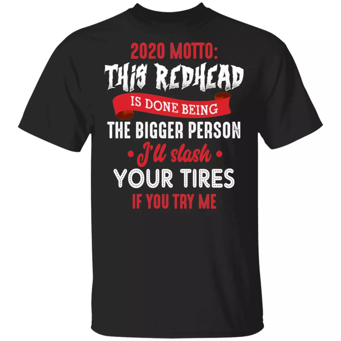 2020 Motto This Redhead Is Done Being The Bigger Person I’ll Slash Your Tires If You Try Me T-Shirt