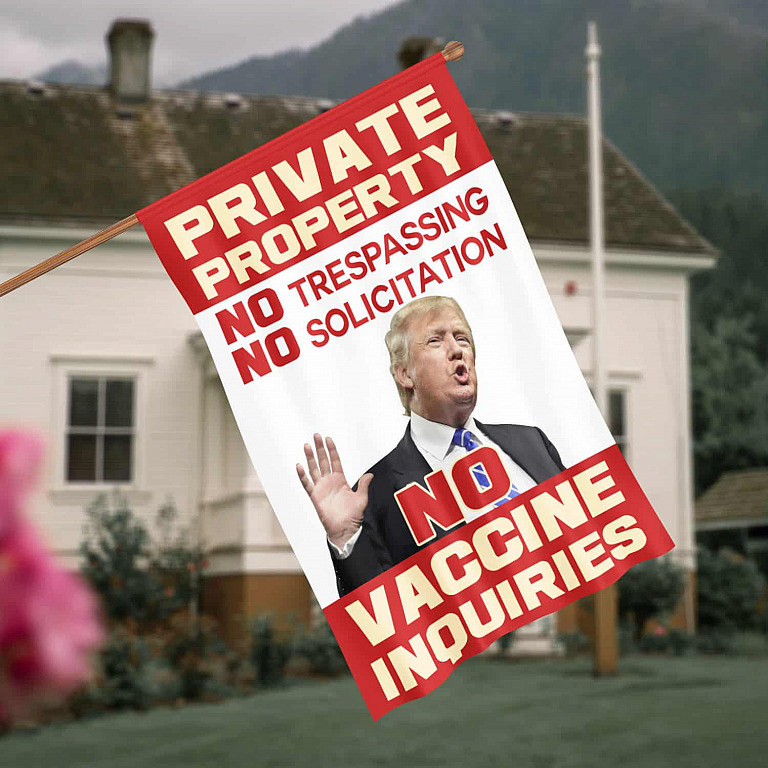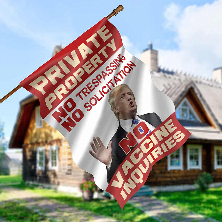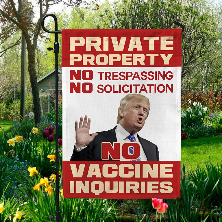 Let’s Shop Funny Trump No Vaccine Meme Saying Flag – Private Property No Trespassing No Solicitation No Vaccine Inquires Outdoor Garden House Flag!
