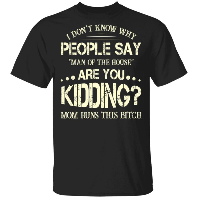 I Don’t Know Why People Say Man Of The House Are You Kidding Mom Runs This Bitch Funny T-Shirt