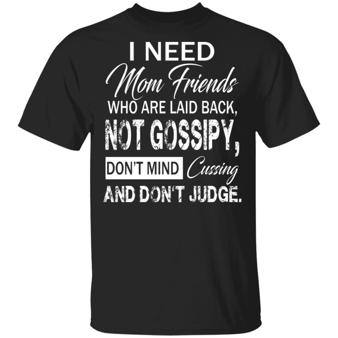 I Need Mom Friends Who Are Laid Back Not Gossipy Don’t Mind Cussing And Don’t Judge Funny T-Shirt