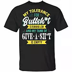 My Tolerance For Bullshit Is Running Low And My Tank Of Give A Shit Is Empty Funny T-Shirt