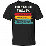 Rules When I First Wake Up Everyone Shut The Hell Up Get Out Of My Way Don’t Ask Me Any Damn Questions T-Shirt
