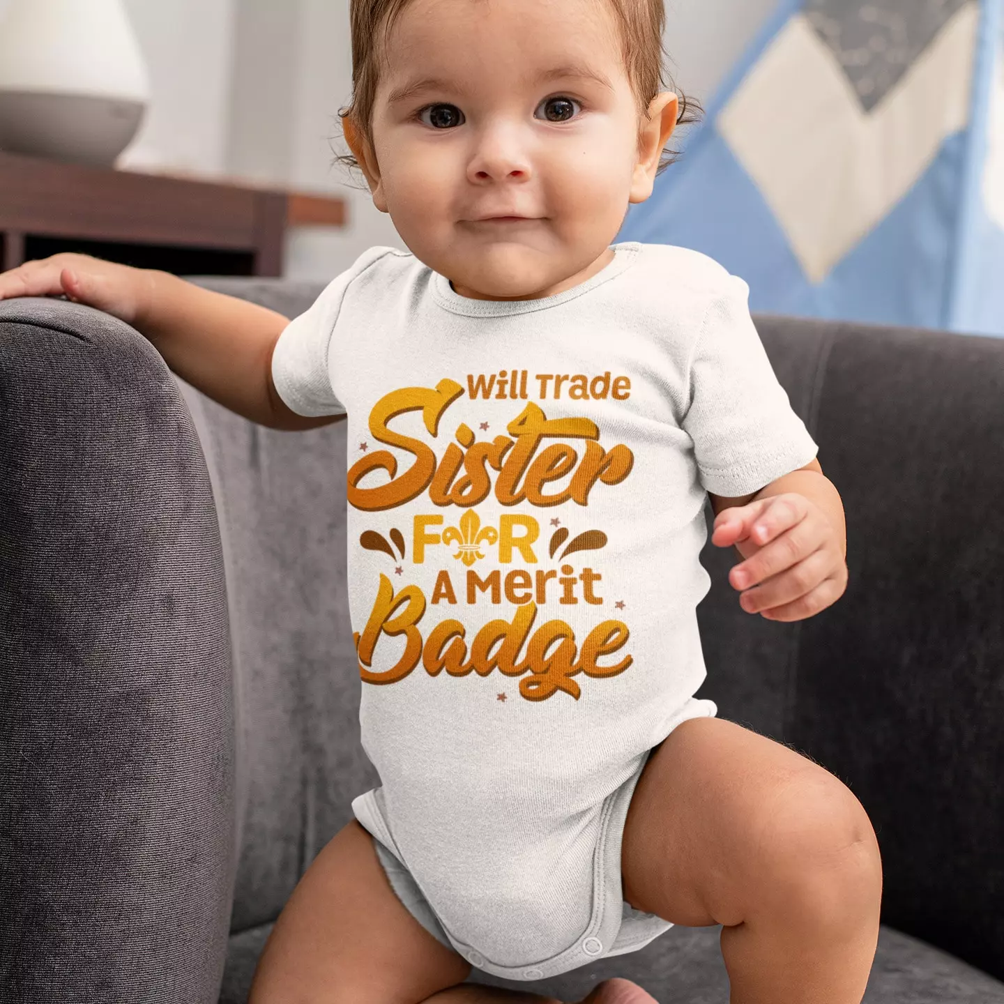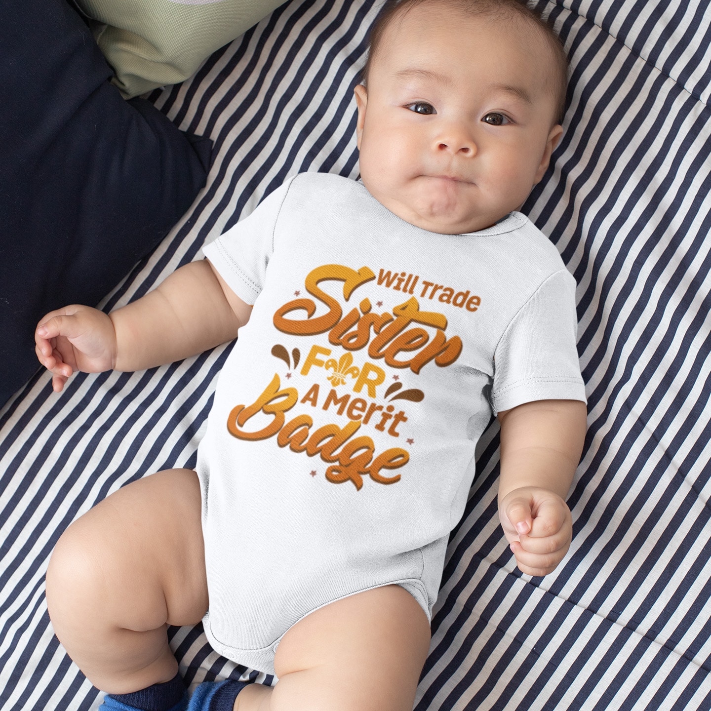 Let’s Shop Will Trade Sister For a Merit Badge Baby Onesie – Baby Infant Bodysuit!