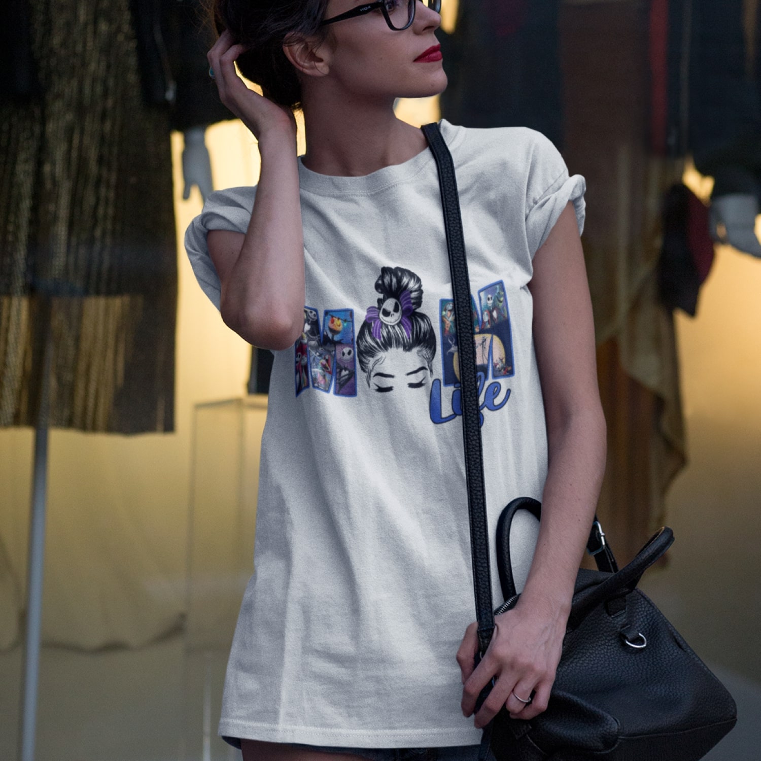 1. Mom life Skellington (3), Heather White, Premium Ladies T-Shirt