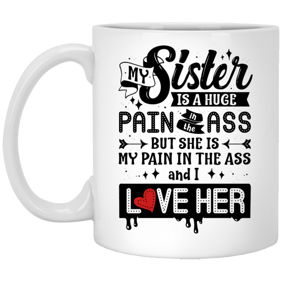 Shop My Sister Is A Huge Pain In The Ass And I Love Her Coffee Mug – Travel Mug – Water Bottle.