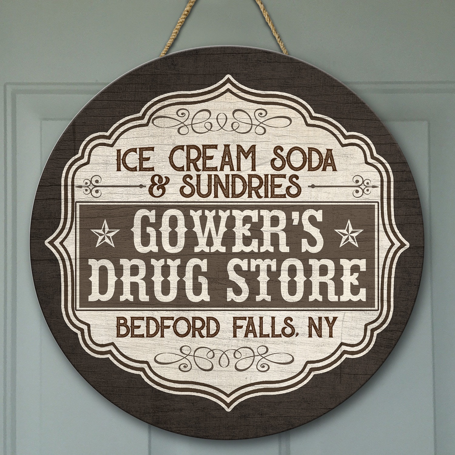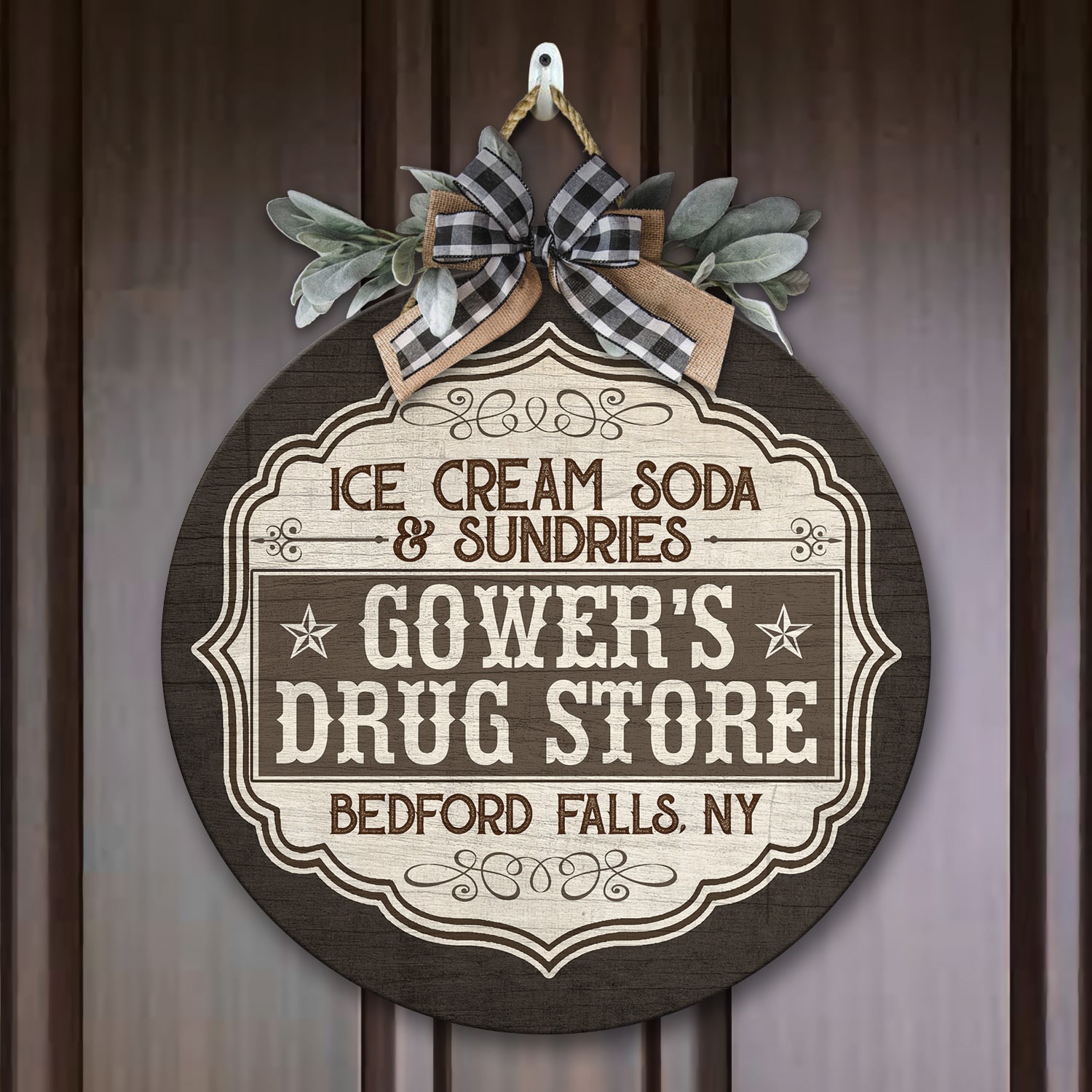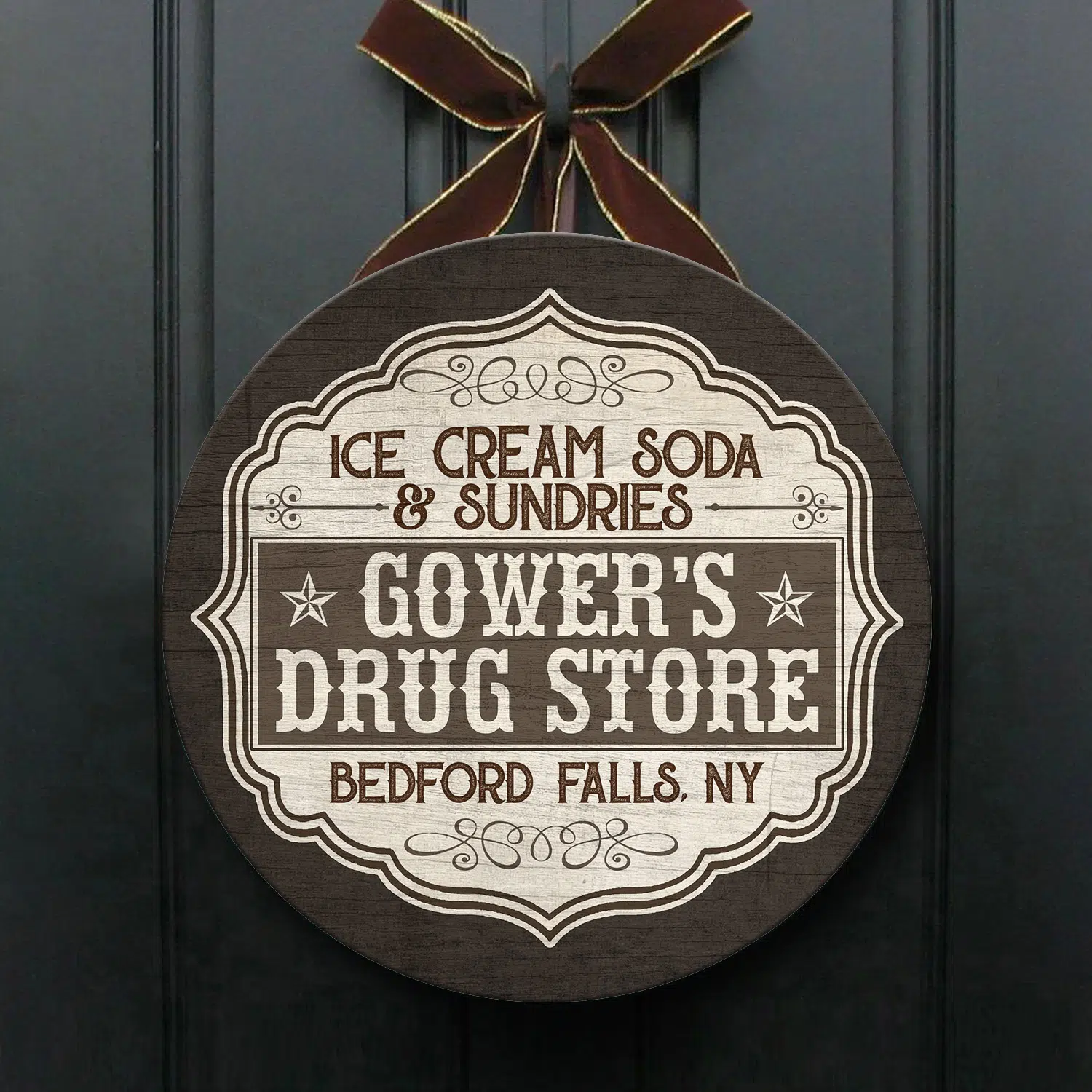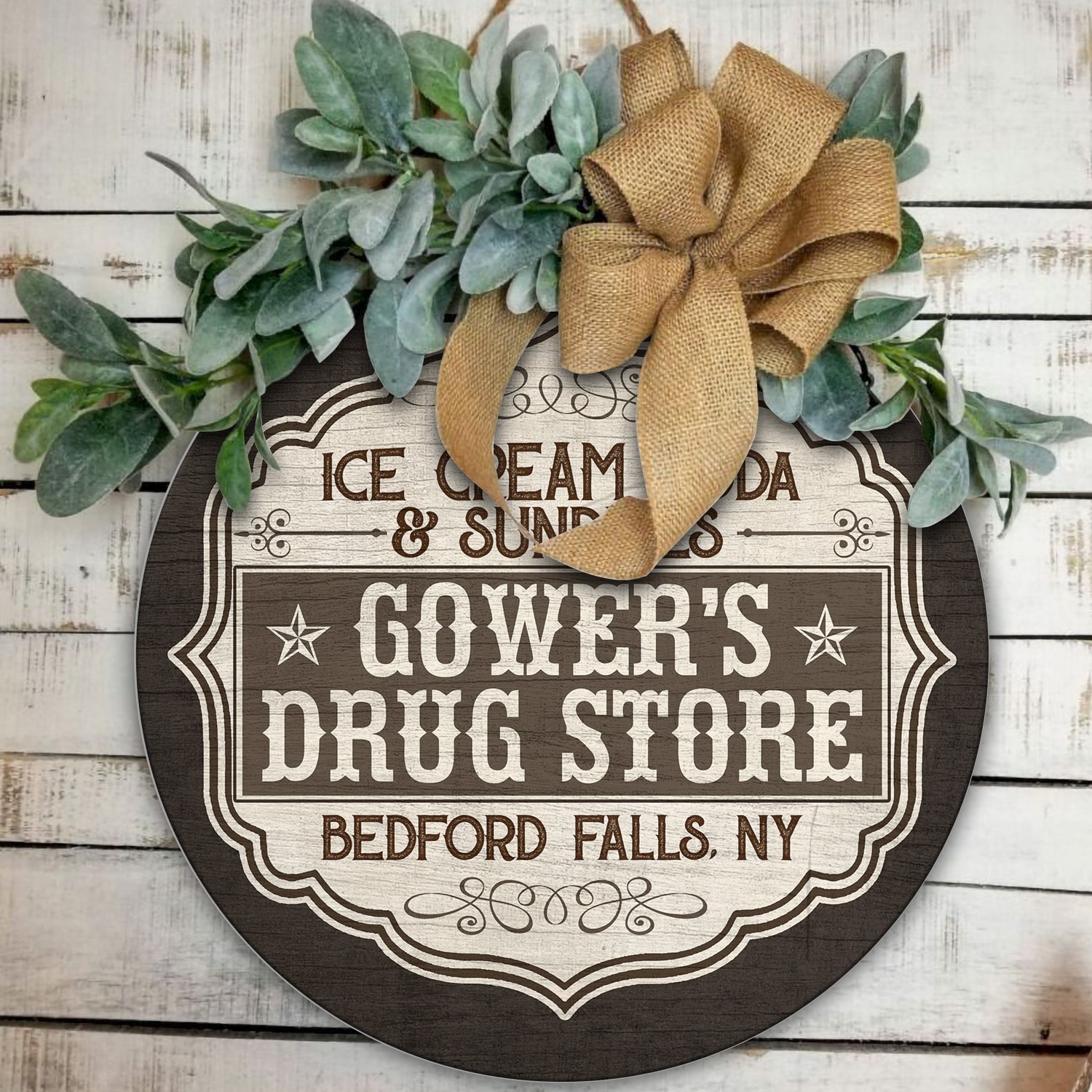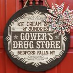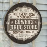 Let’s Shop Ice Cream Soda and Sundries Decorative Circle Wooden Door Sign – Front Porch Sign!