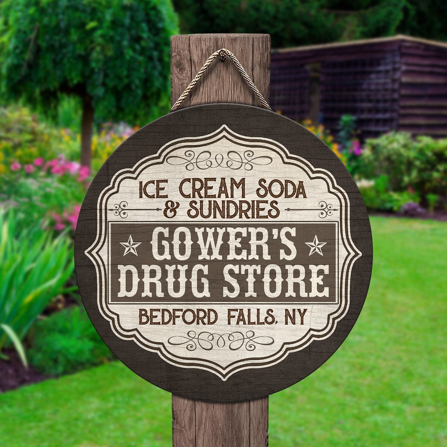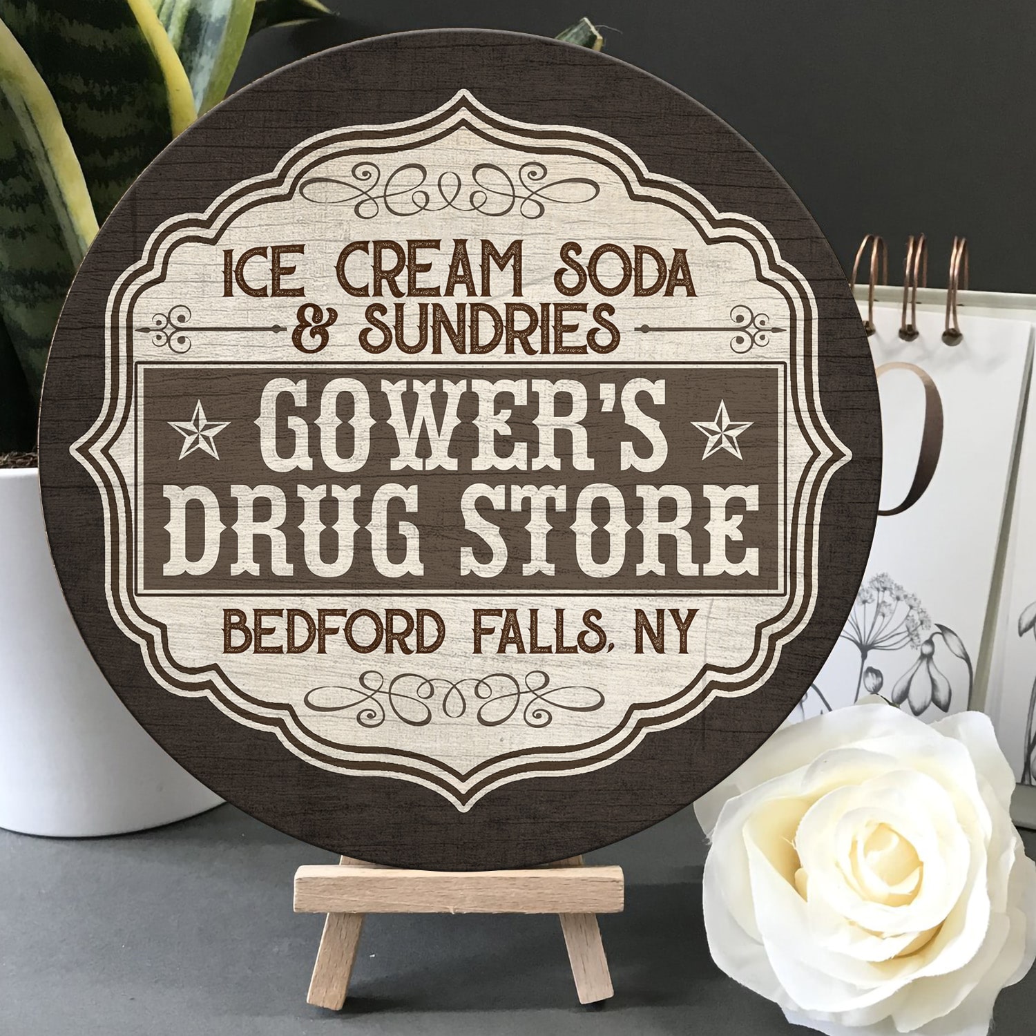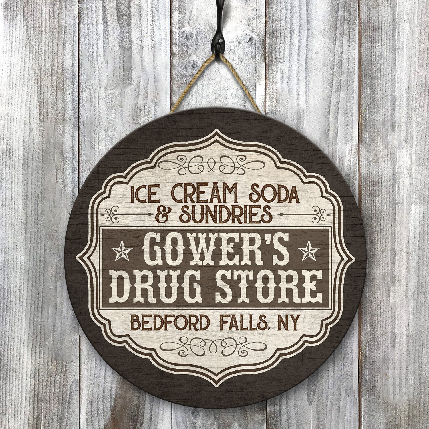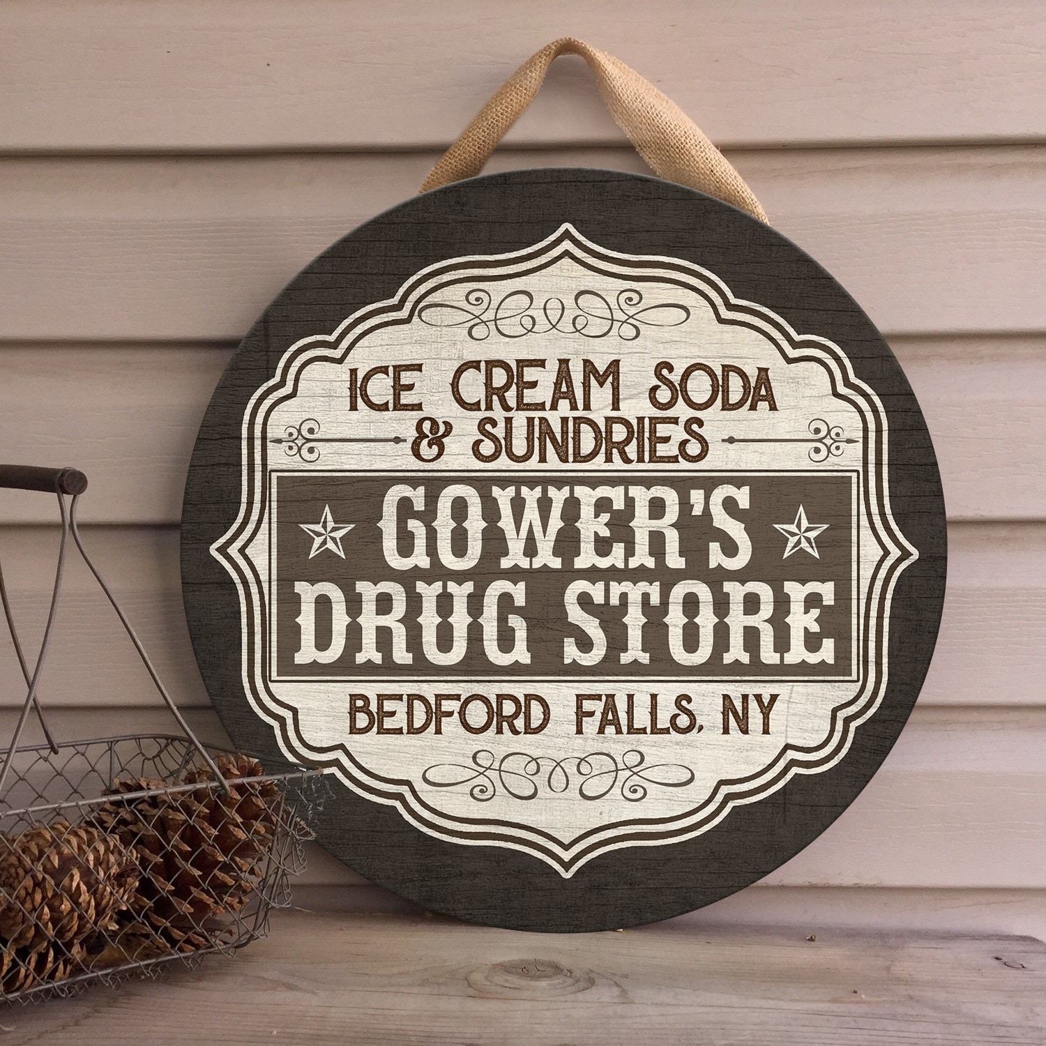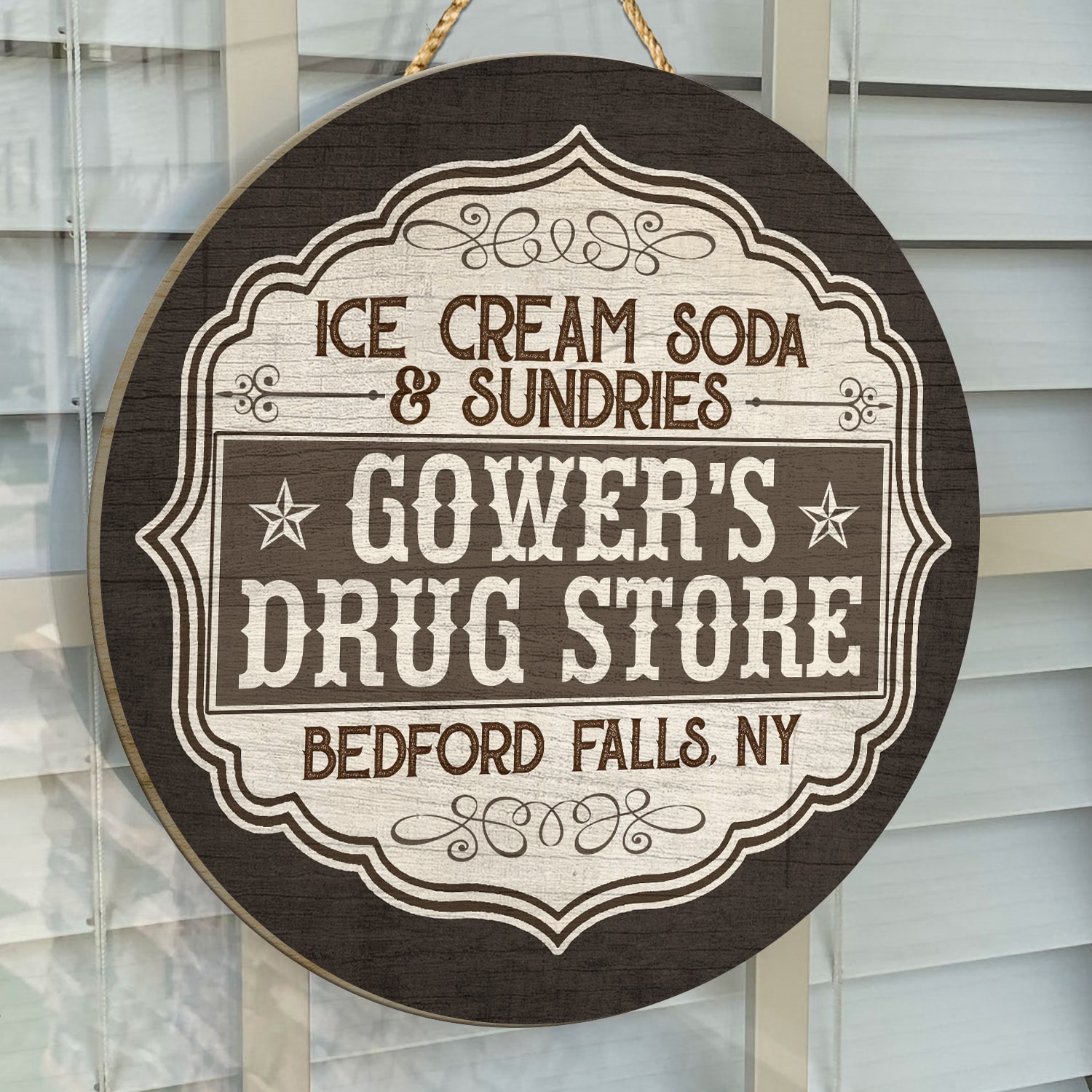Let’s Shop Ice Cream Soda and Sundries Decorative Circle Wooden Door Sign – Front Porch Sign!