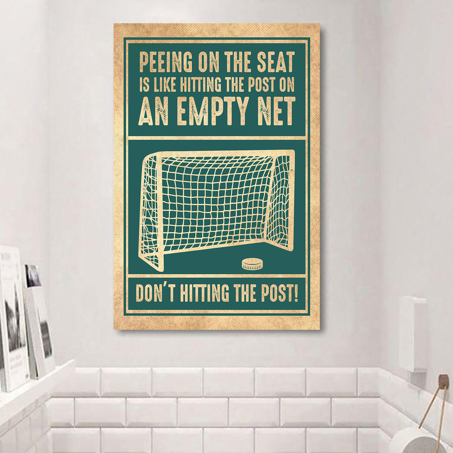 Let’s Shop Peeing On The Seat Is Like Hitting The Post On An Empty Net Framed Canvas – Unframed Poster – Funny Toilet Decor!