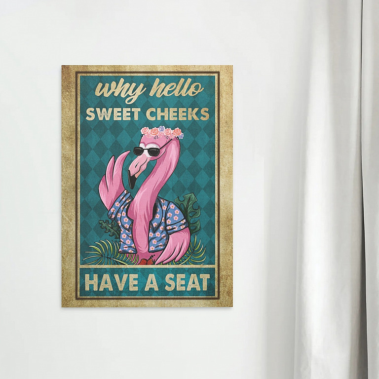 Let’s Shop Flamingo Why Hello Sweet Cheeks Have A Seat Funny Bathroom Toilet Room Framed Canvas Prints – Unframed Poster!