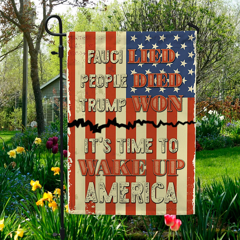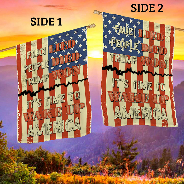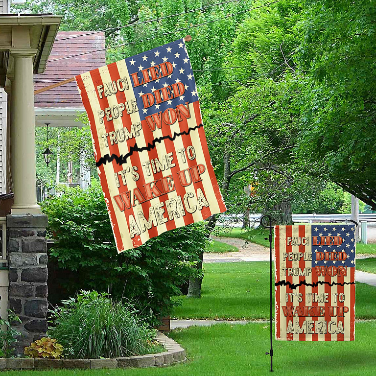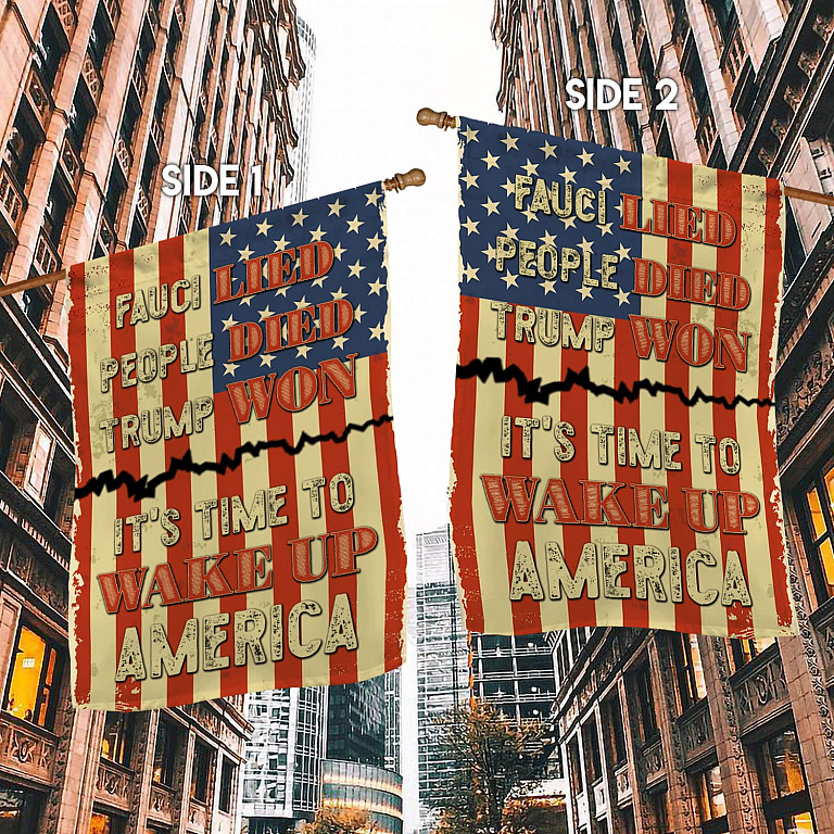 Let’s Shop Fauci Lied People Died Trump Won It’s Time To Wake Up America Pro Trump Outdoor House Flag – Home Garden Flag!