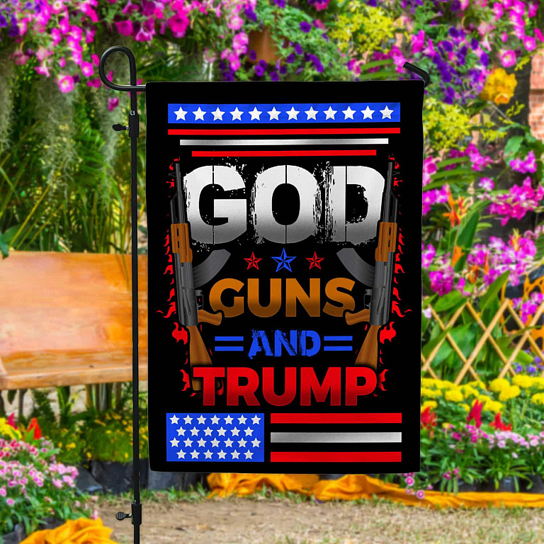 Let’s Shop God Guns And Trump American Pro Trump Outdoor House Flag – Support Trump Home Garden Flag!