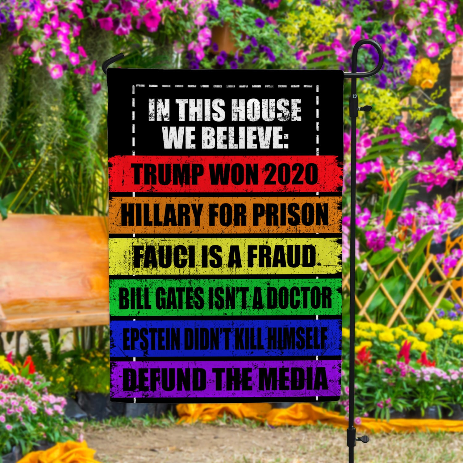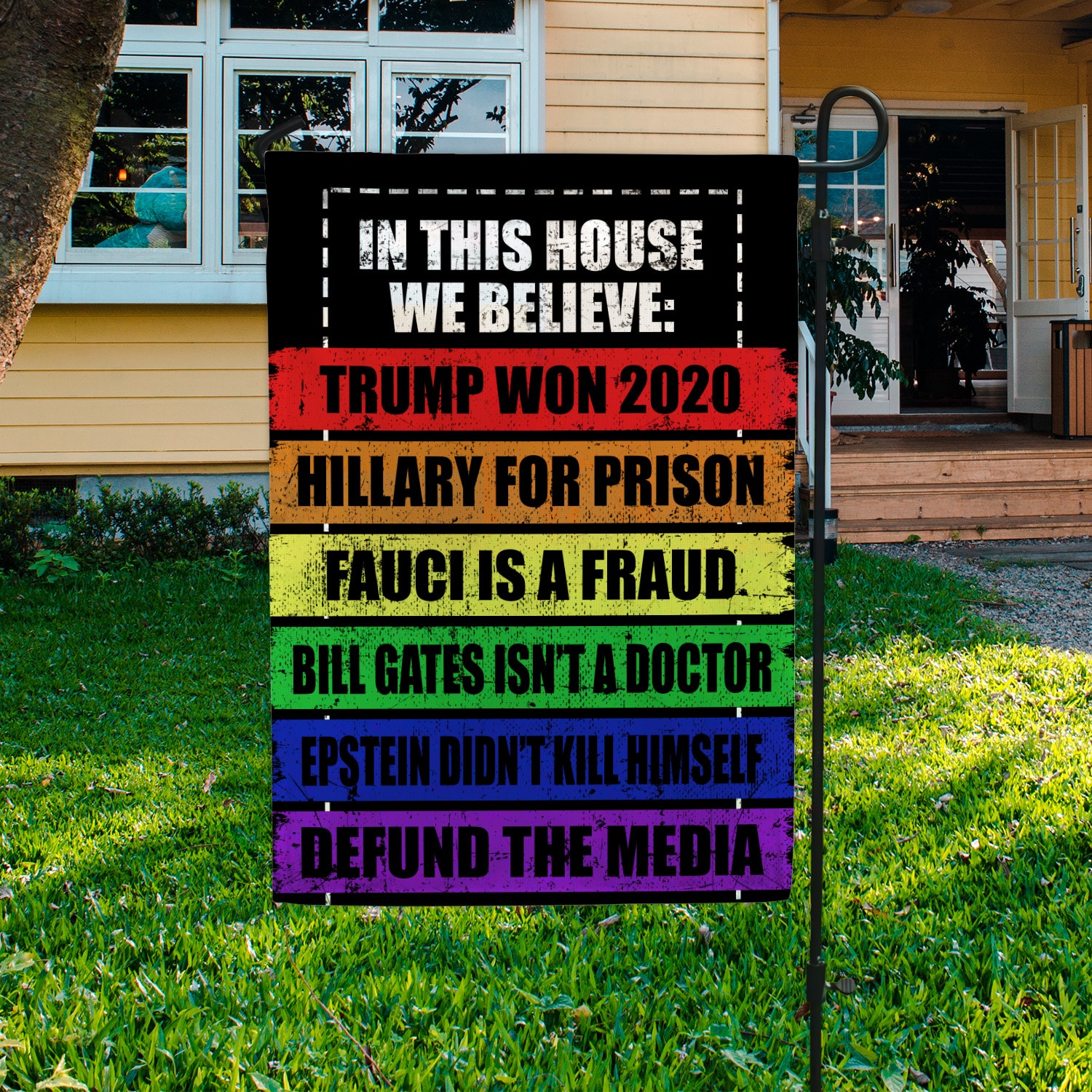 Let’s Shop In This House We Believe Trump Won 2020 Hillary For Prison Fauci Is A Fraud Outdoor House Flag – Home Garden Flag!