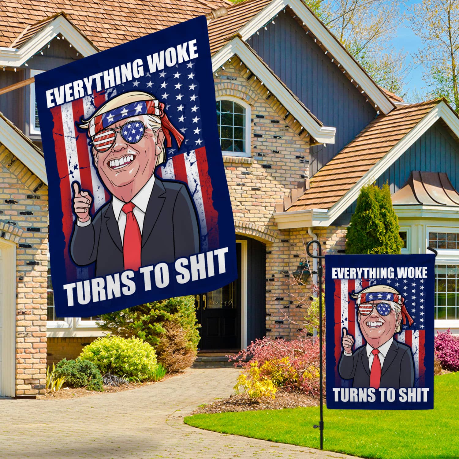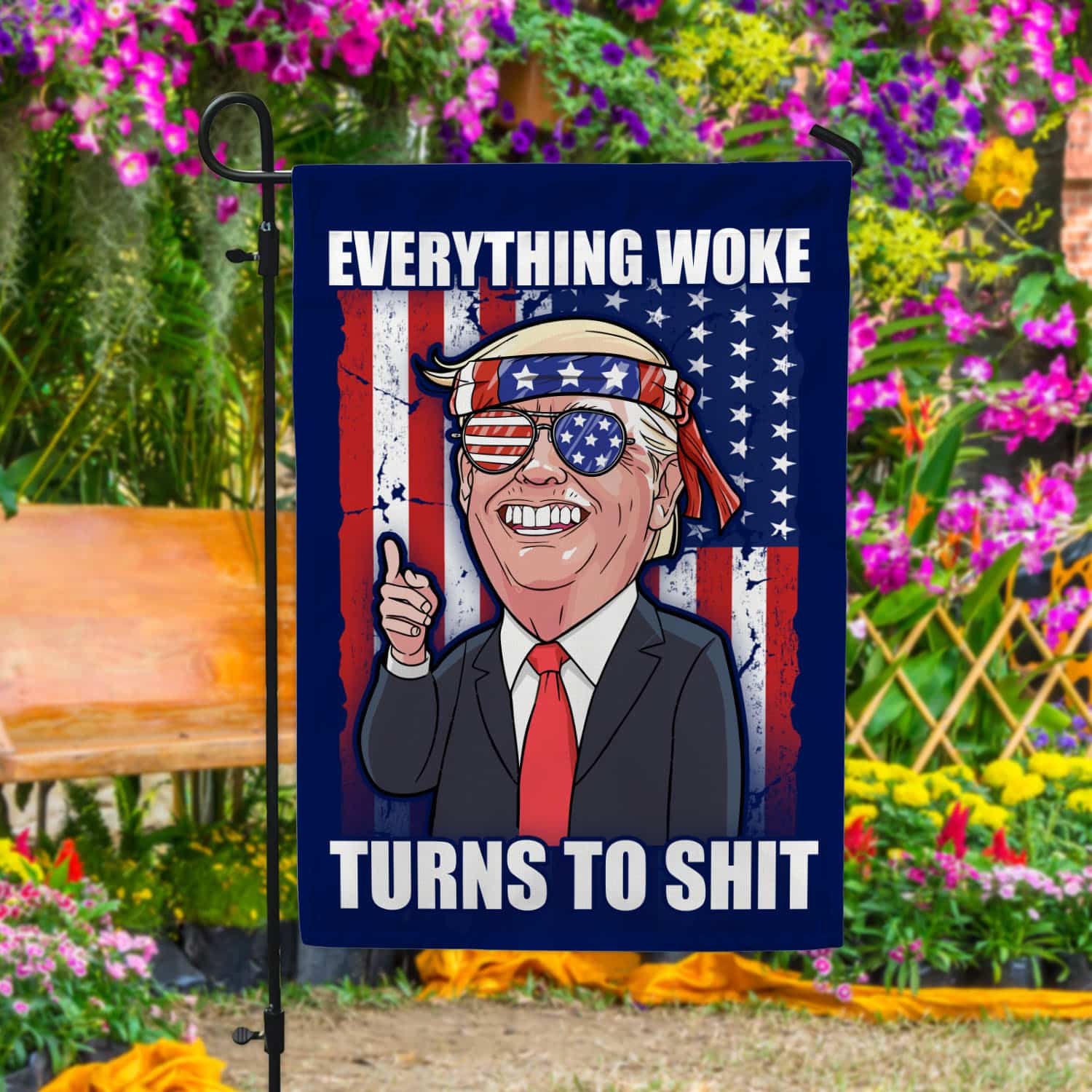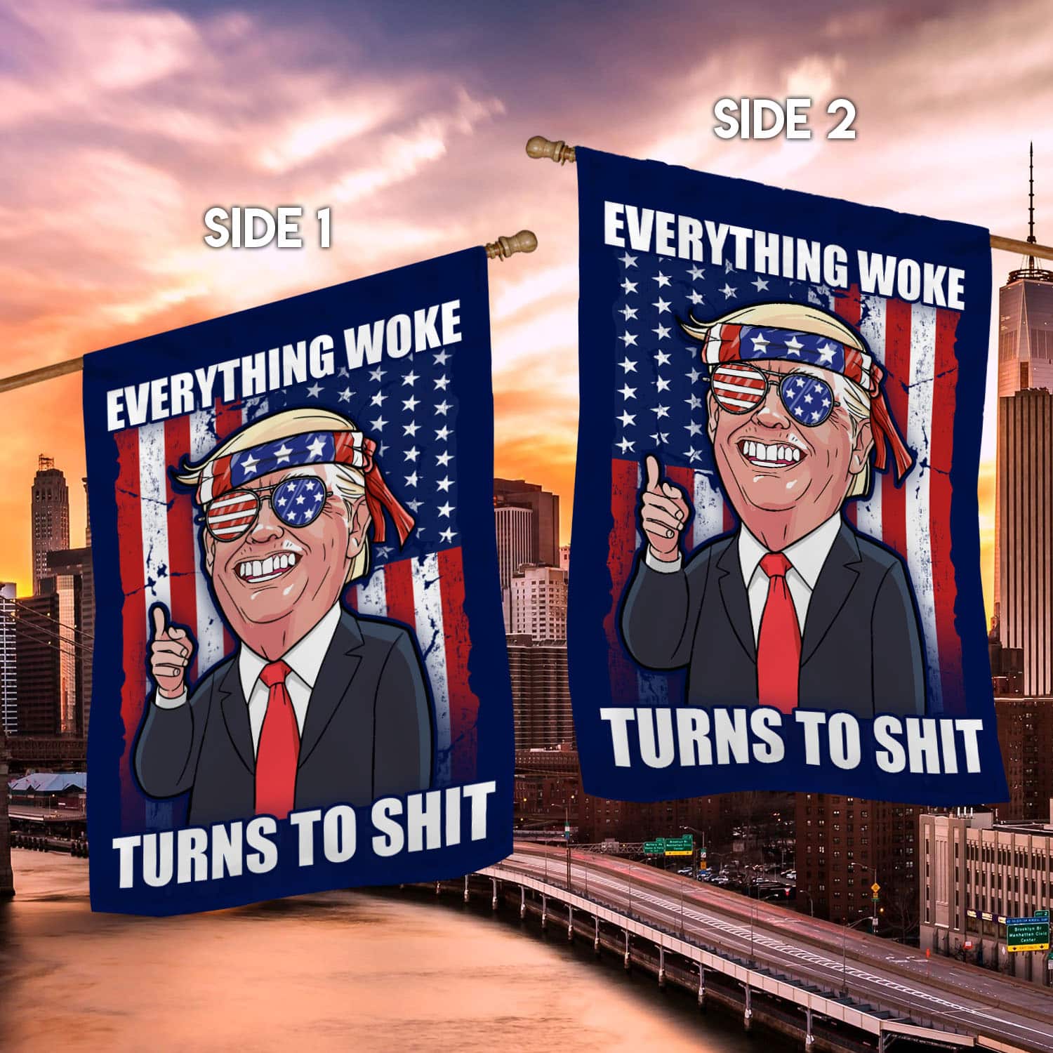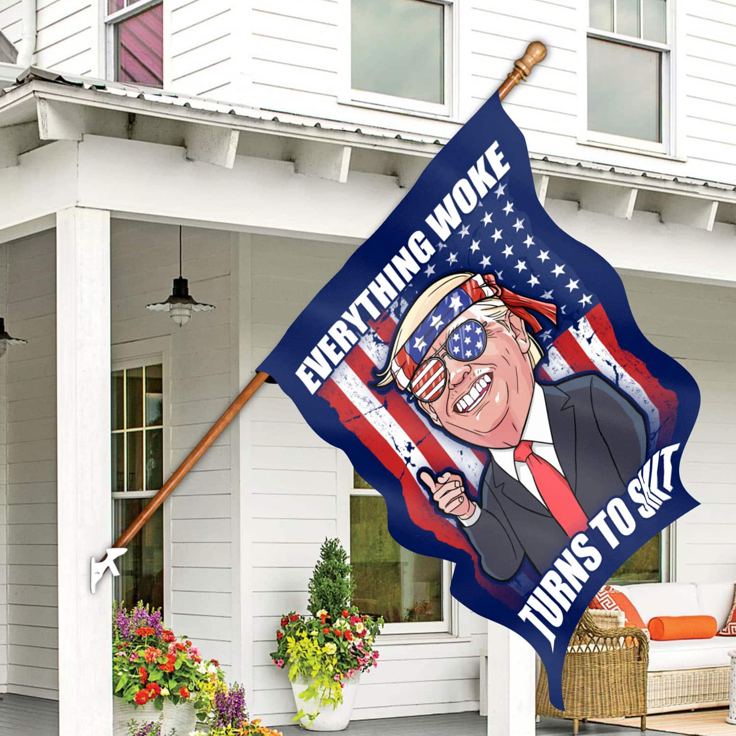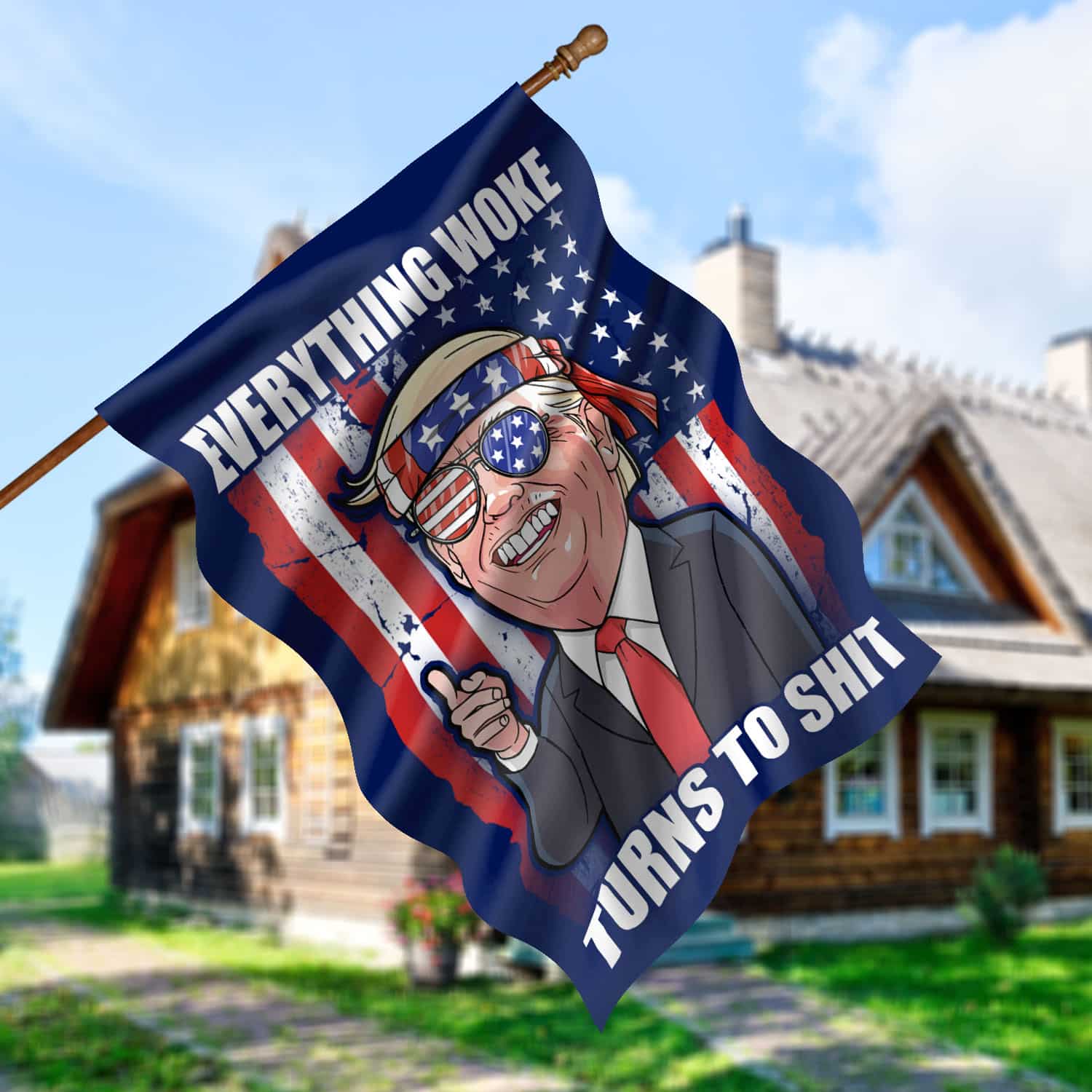 Let’s Shop Funny Trump Everything Woke Turns To Shit Outdoor Garden Flag – House Flag – Wall Flag!