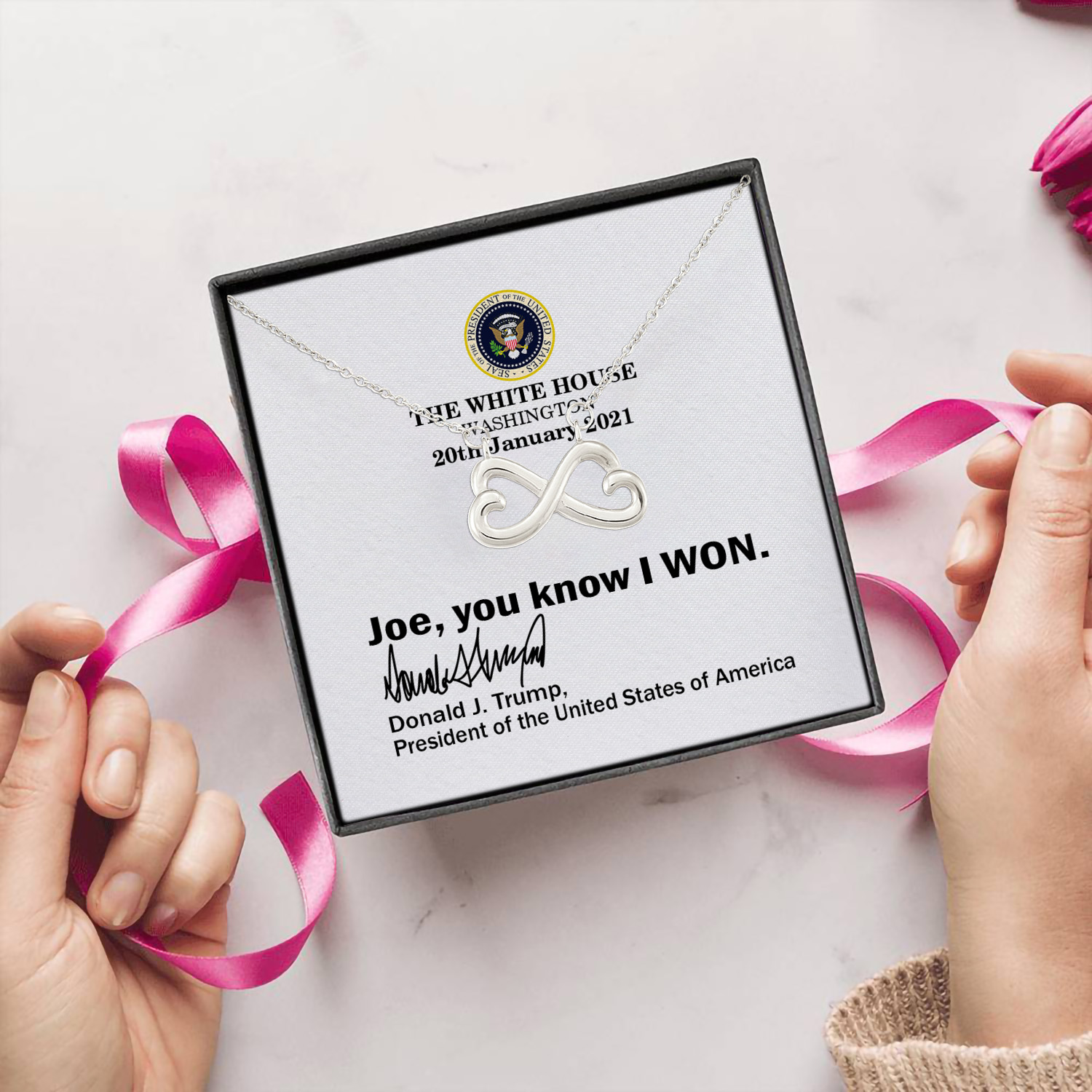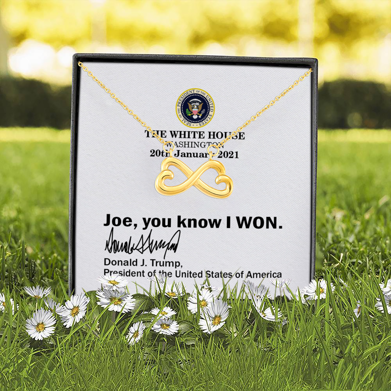 Let’s Shop Joe You Know I Won Funny Trump White House Note 2021 Infinity Heart Pendant Necklace!