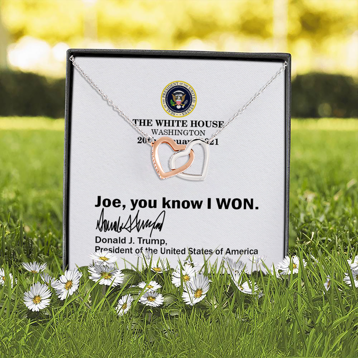 Let’s Shop Joe You Know I Won Funny Trump White House Note 2021 Joined Interlocking Hearts Pendant Necklace!