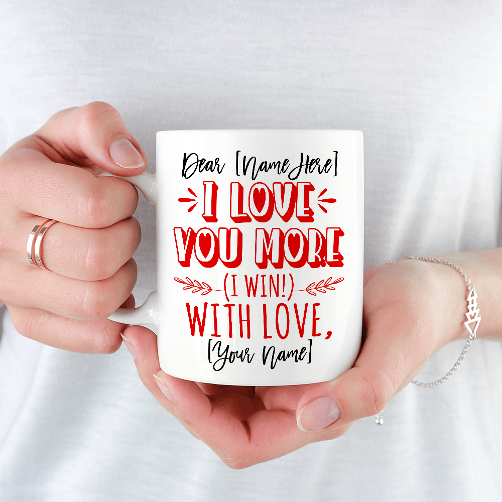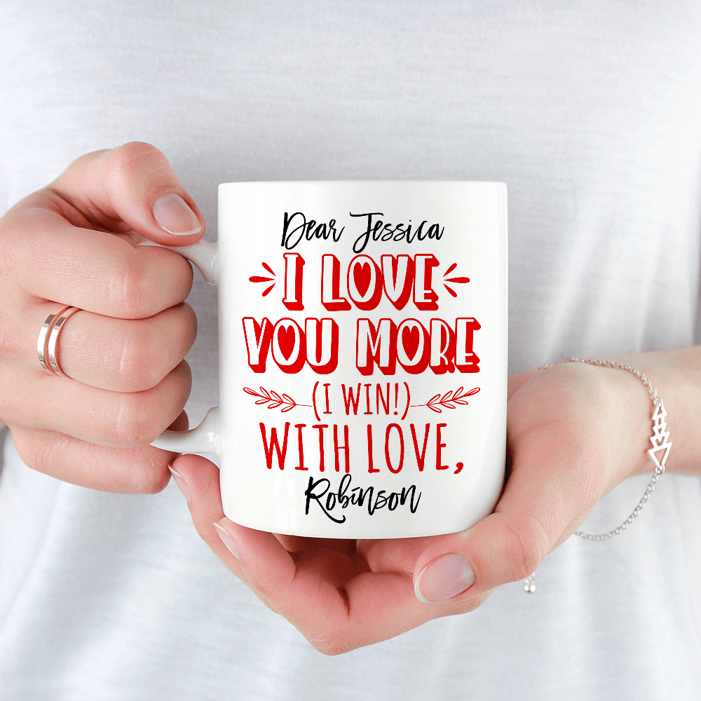 Shop Personalized I Love You More I Win With Love Coffee Mug – Beer Stein – Valentine Gift For Her Him.