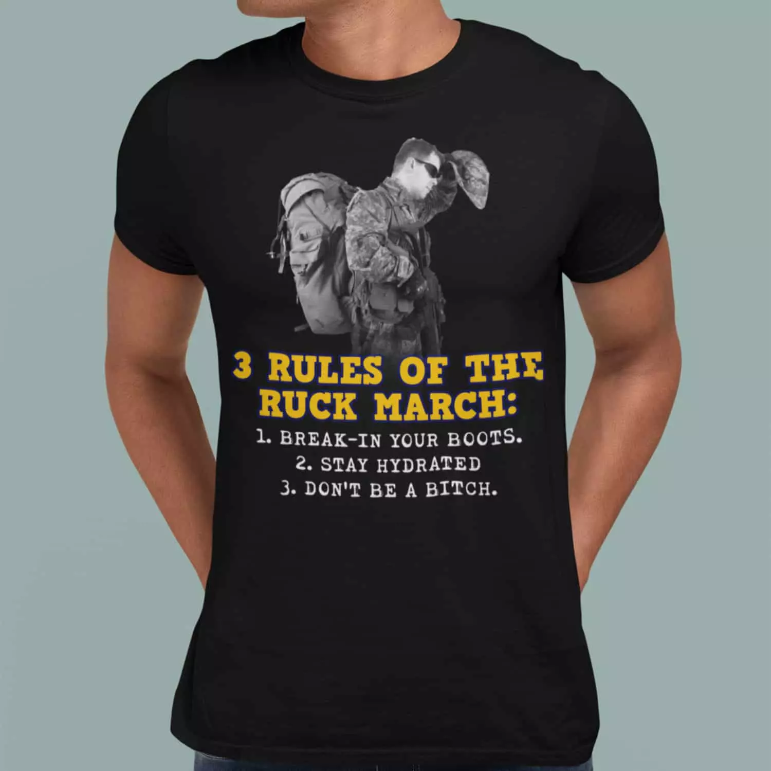 3 Rules Of The Ruck March Break-in Your Boots Stay Hydrated Don’t Be A Bitch Shirt
