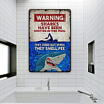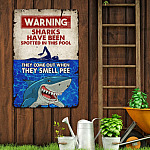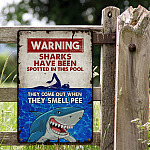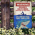 Let’s Shop Funny Warning Shark Pool Safety Swimming Metal Sign Hanger – Warning Sharks Have Been Spotted In This Pool Metal Sign!