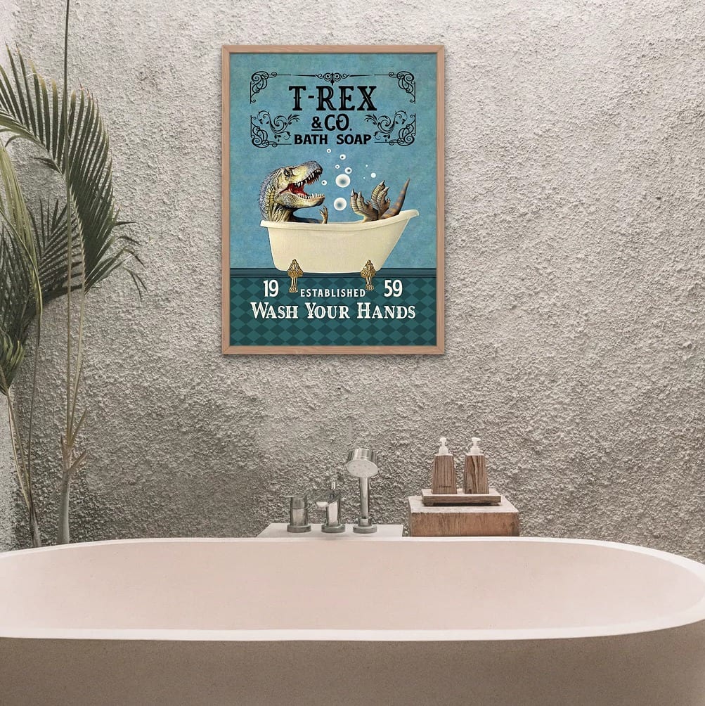 Are you spending too much time to find creative merchandise for you or suitable & special gifts for your mommy, your daddy, your son, your daughter, your children, your friends or someone you love? The struggle is over because we have various T-Rex Wash Your Hands Bathroom Decor Framed Canvas – Unframed Poster – Funny Wash Your Hand Bathroom Decor which will make perfect presents for your beloveds. In order to make your present stand out, we have created lots of unique and awesome customized photo gifts & personalized designs.