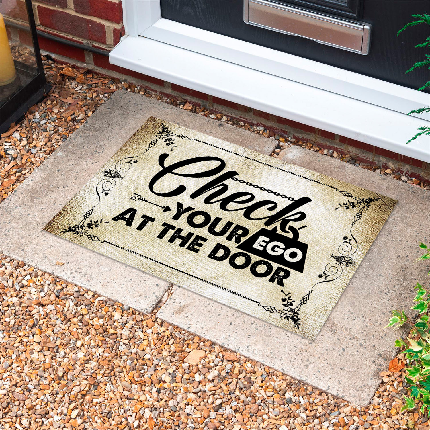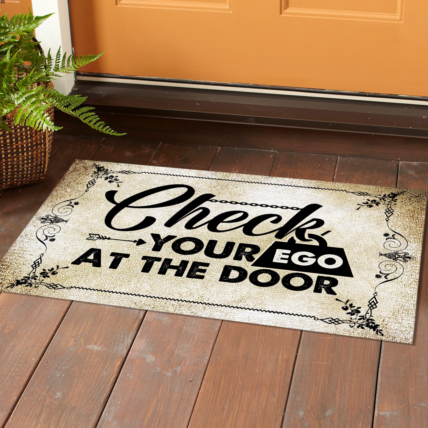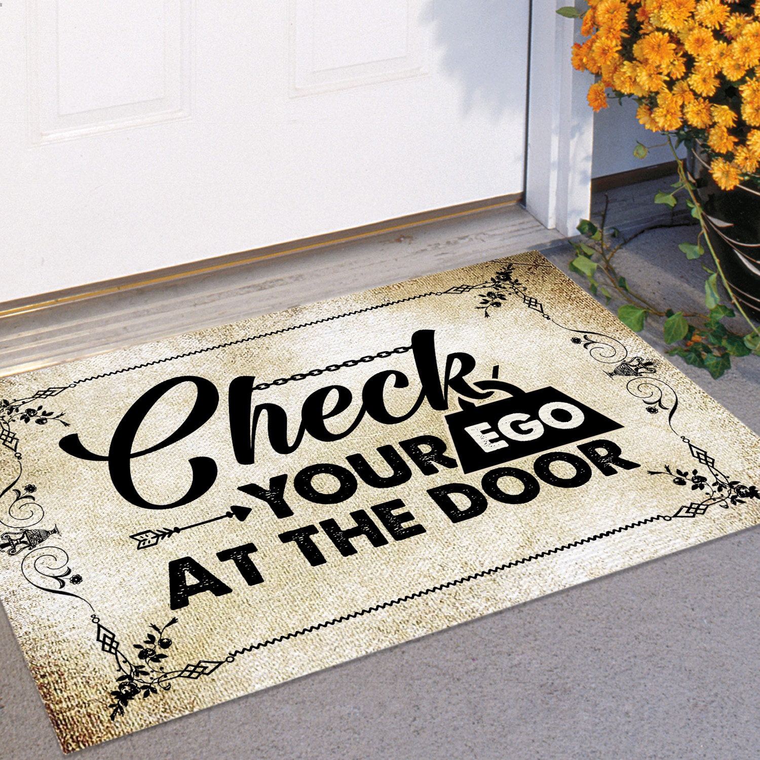 Let’s Shop Check Your Ego At The Door Doormat – Outdoor Indoor Doormat!