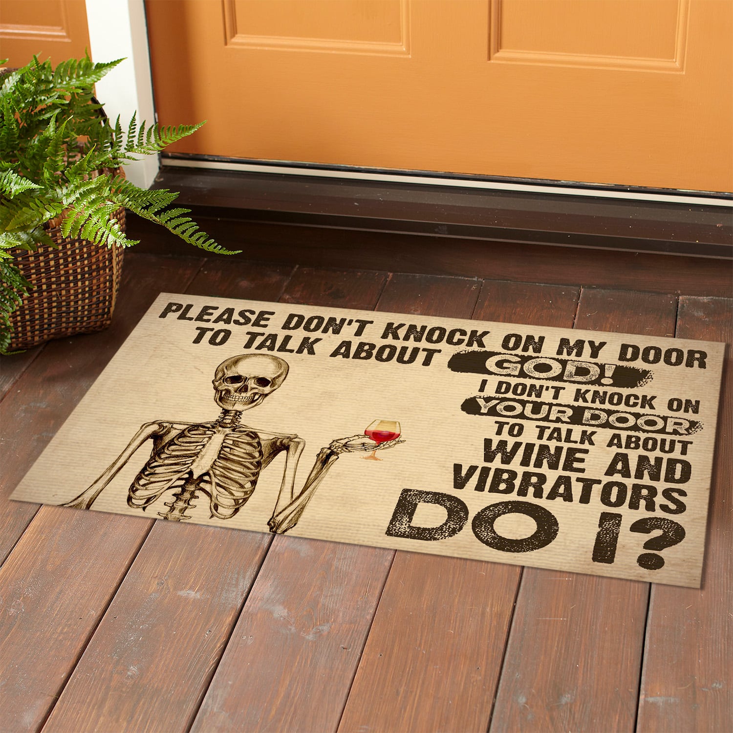 Are you spending too much time to find creative merchandise for you or suitable & special gifts for your mommy, your daddy, your son, your daughter, your children, your friends or someone you love? The struggle is over because we have various Please Don’t Knock on My Door Doormat, Knock on Your Door to Talk About Wine and Vibrators Doormat, Wine Welcome Mat, Funny Wine Doormats which will make perfect presents for your beloveds. In order to make your present stand out, we have created lots of unique and awesome customized photo gifts & personalized designs.