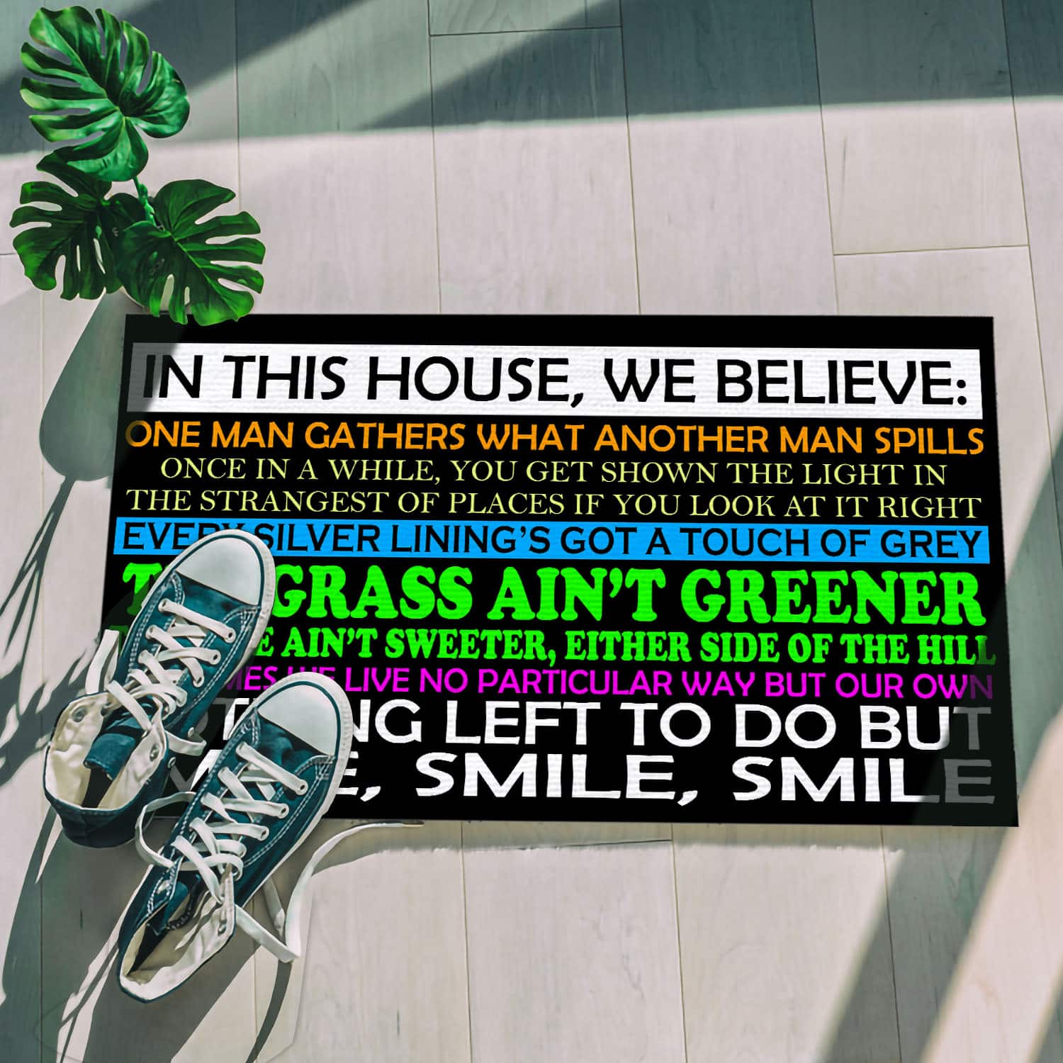 Let’s Shop In This House We Believe One Man Gathers What Another Man Spills Funny Entrance Indoor Outdoor Decorative Doormat!