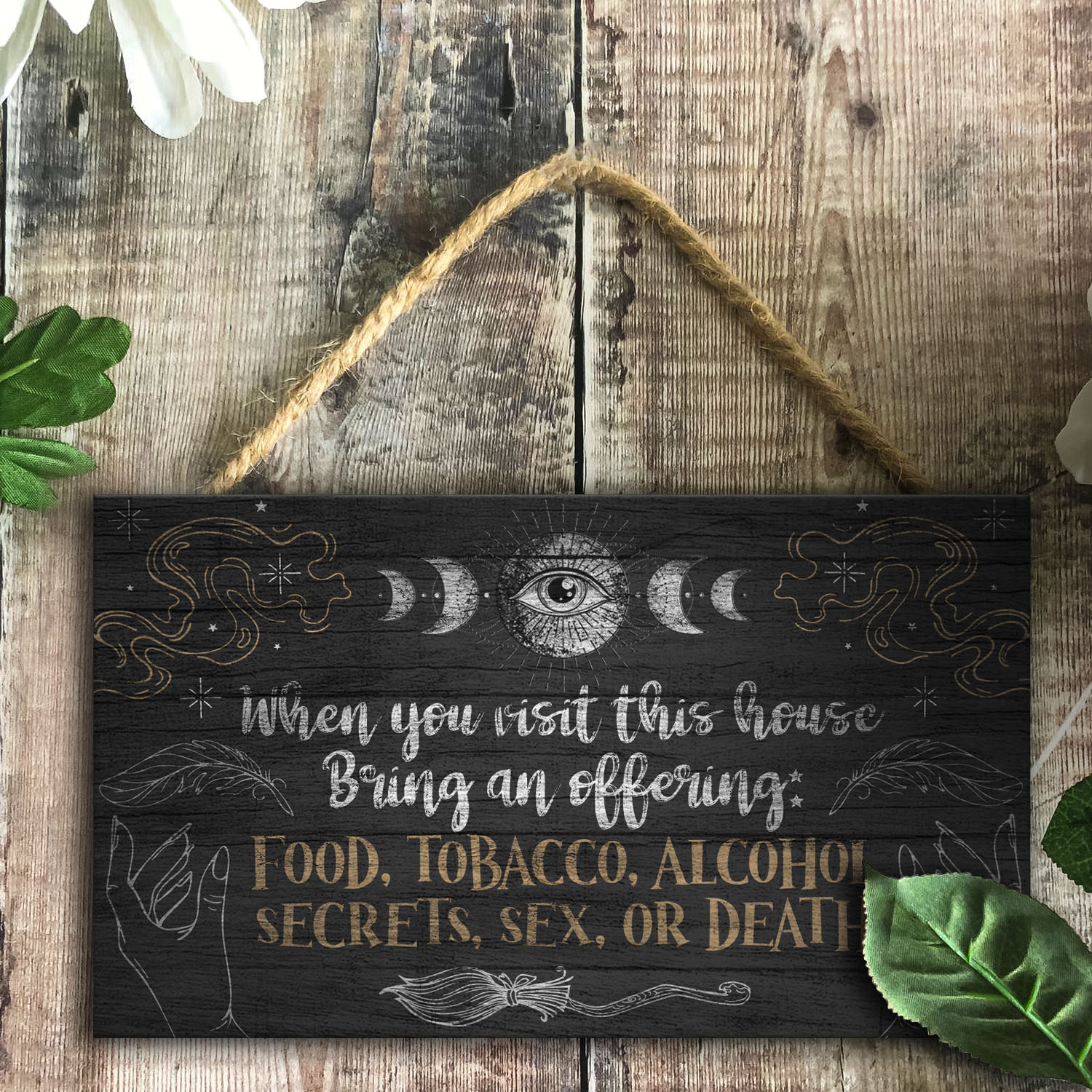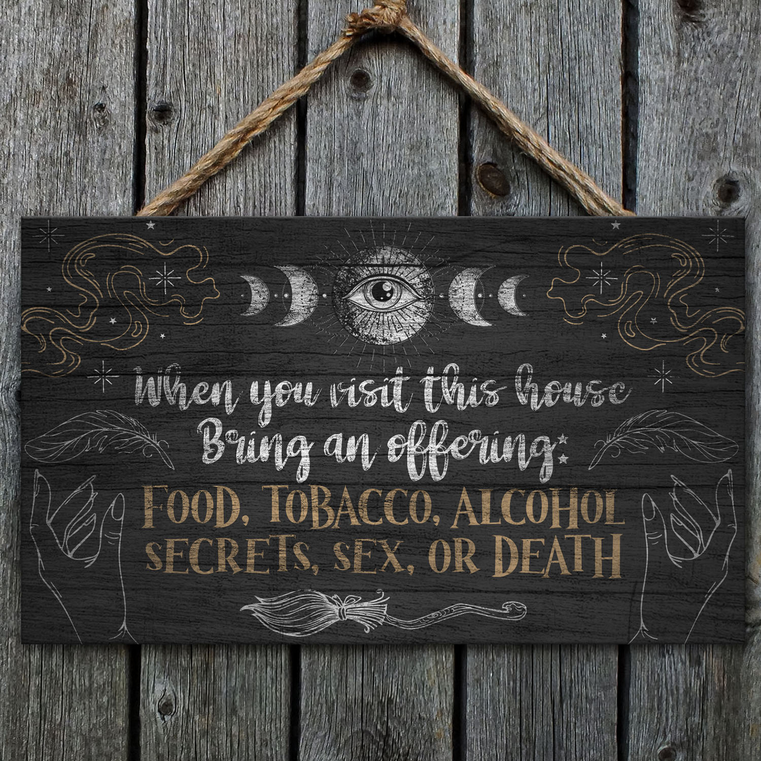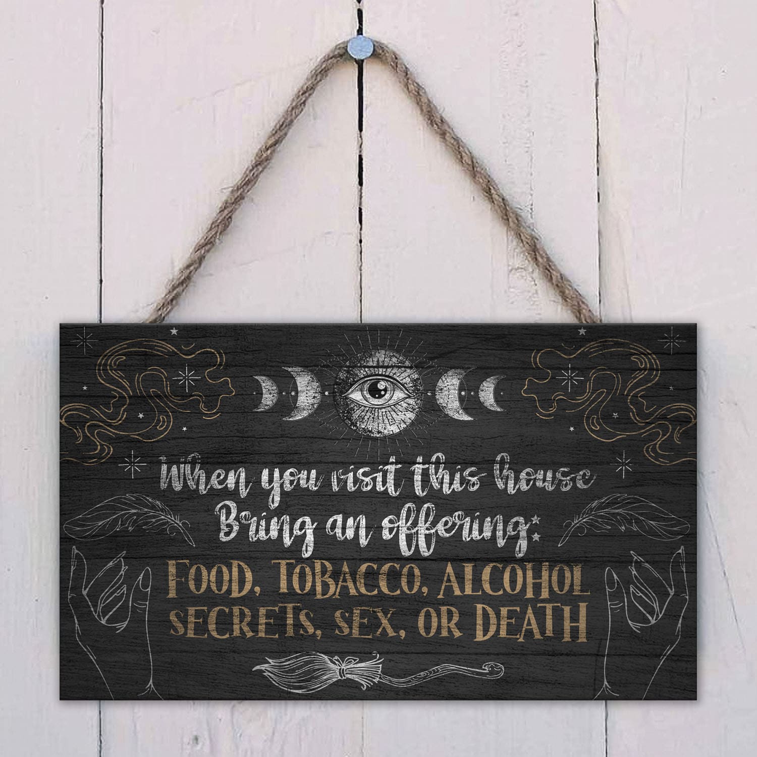 Let’s Shop When You Visit This House Bring An Offering Food Tobacco Funny Witch Rectangle Wooden Door Sign – Front Porch Sign!
