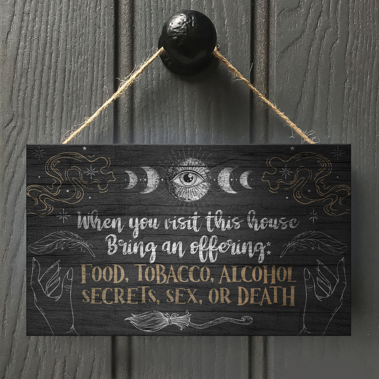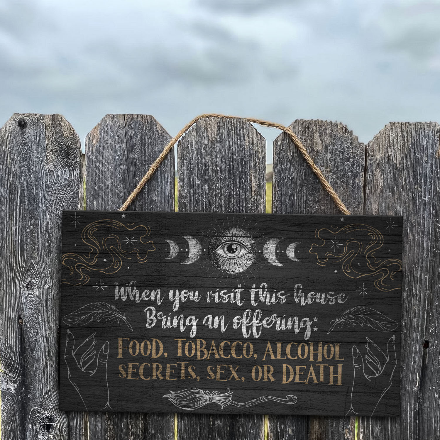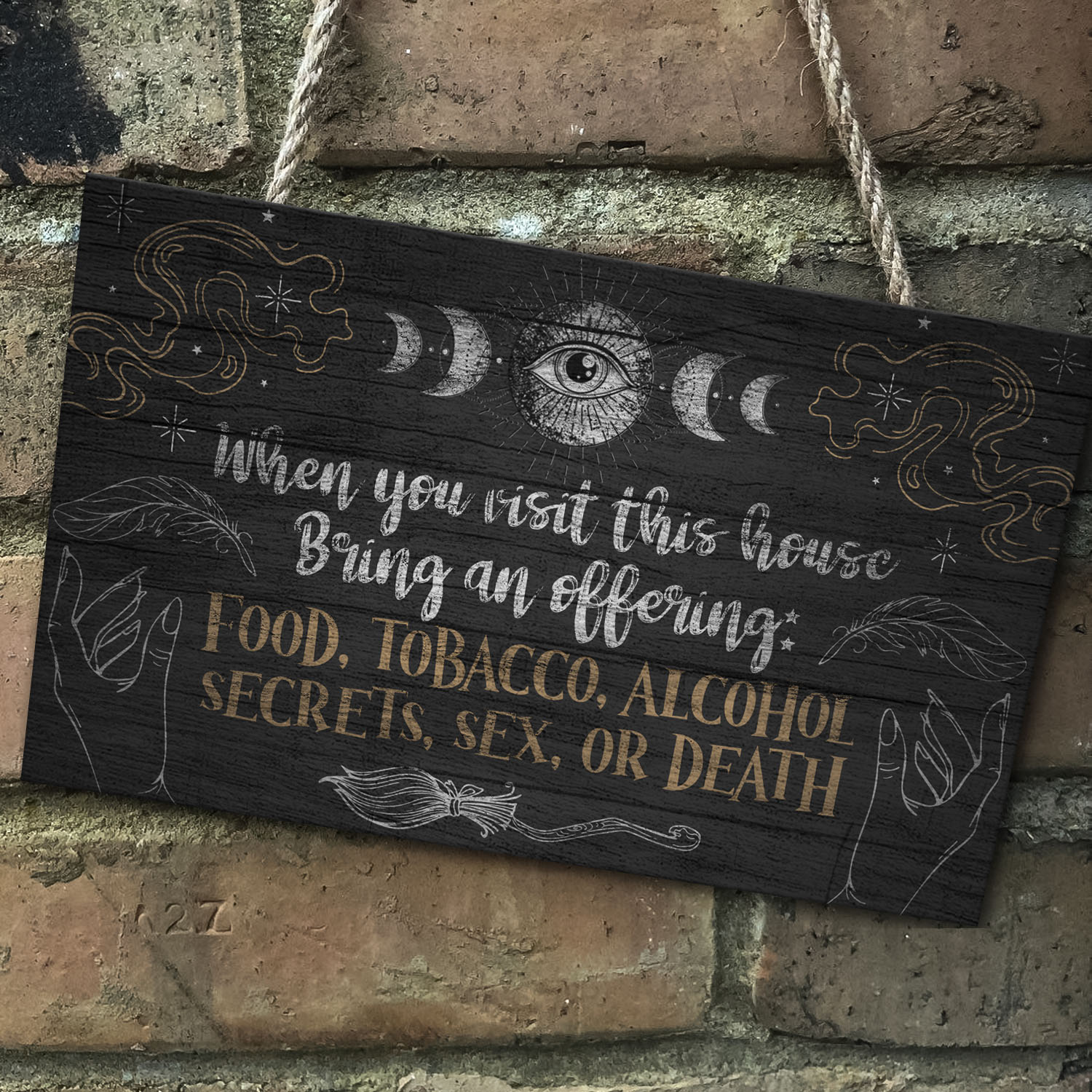 Let’s Shop When You Visit This House Bring An Offering Food Tobacco Funny Witch Rectangle Wooden Door Sign – Front Porch Sign!