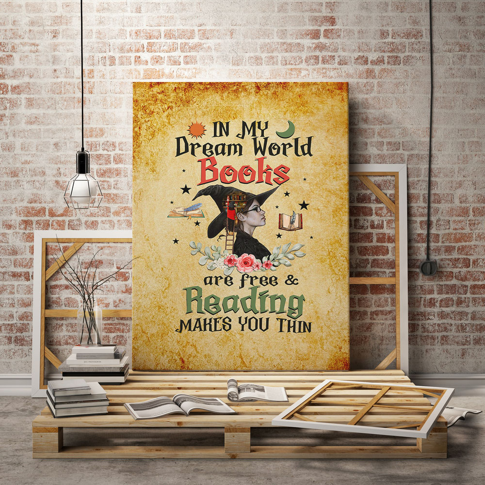 Let’s Shop In My Dream World Books Are Free & Reading Makes You Thin Canvas Poster – Fun Reading Bookworm Meme Wall Art!