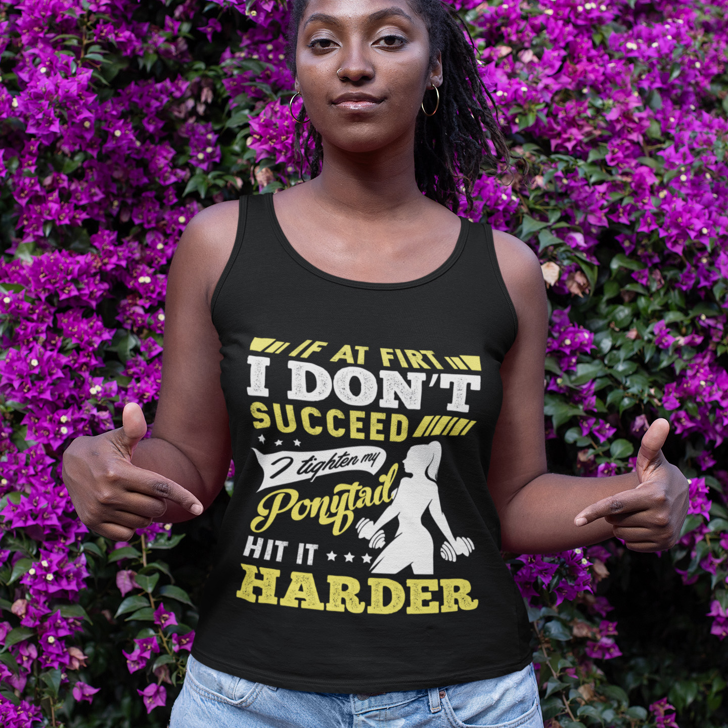 If I Don’t Succeed I Tighten My Ponytail Hit It Harder Cotton Tank Top Tee – Ladies Racerback Tank