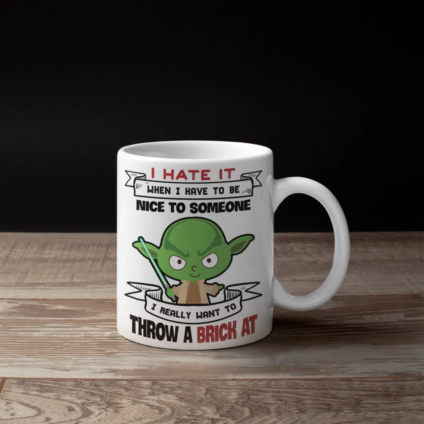 Let’s Shop I Hate It When I Have To Be Nice To Someone I Really Want To Throw A Brick At Funny Baby Yoda Ceramic Coffee Mug!